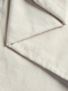 Cord ist ein gerippter, samtiger Stoff mit einer dicken Textur, die für Wärme und Volumen sorgt.