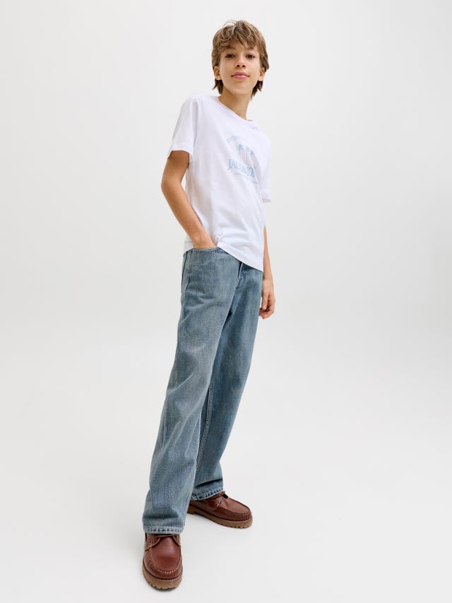 Our slim-fit jeans for boys are ideal for those who don't like their jeans to be too tight or too loose. They are the perfect middle ground between skinny and regular jeans, because although they have a straight leg, they are still narrow in the thigh. If you want to make a stylish impression on your friends, you can combine slim-fit jeans with a destroyed look with a cool print T-shirt, sneakers and a bomber jacket. Or you're like us and you can't get enough of denim fashion, then choose one of our jeans-style boys' jackets and create a cool denim on denim look and amaze your friends.
