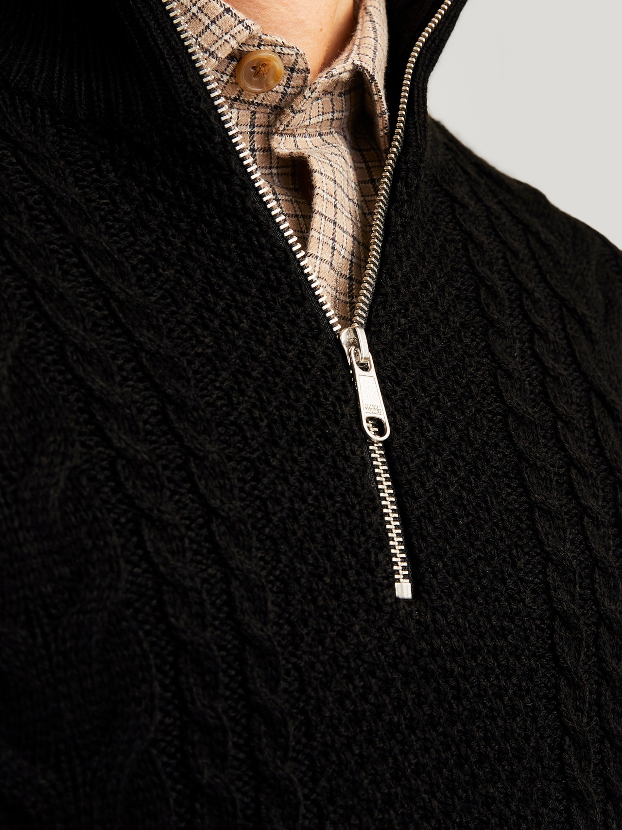 This layering piece works well with a coat, or shacket, but it can also stand alone. Cable knit is characterised by rows that cross each other for a timeless look and soft and warm feel. - Product Type : Knitted pullover - Neck : High neck - Sleeve : Long sleeves - Closing : Half zip fastening - Fit : Knit Fit