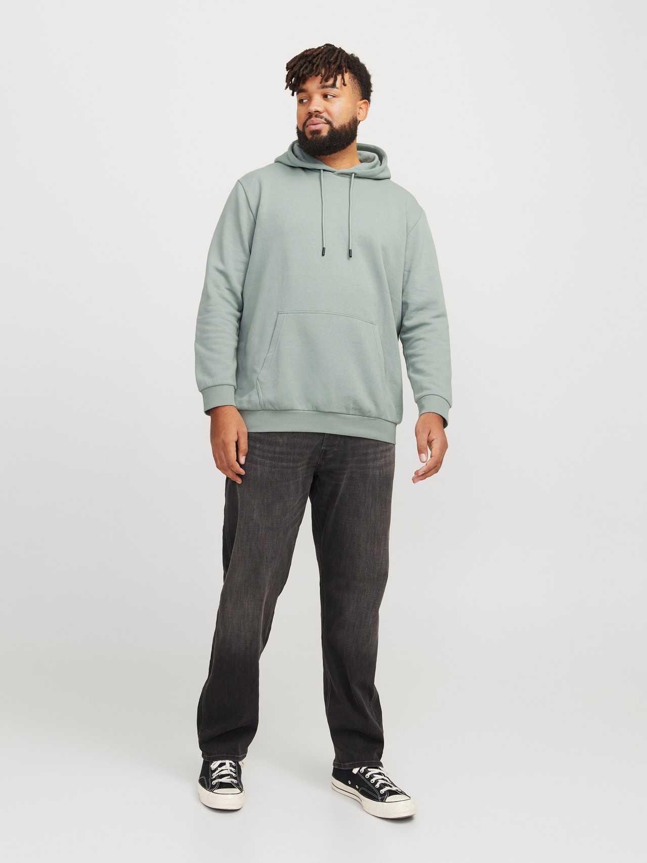 No wardrobe is complete without a few dependable staples like sweats. Plus styles are designed to fit plus-size bodies. - Product Type : Hoodie - Neck : Hoodie - Sleeve : Long sleeves - Sleeves : Set in sleeves - Pockets : Kangaroo pocket - Fit : Relaxed Fit