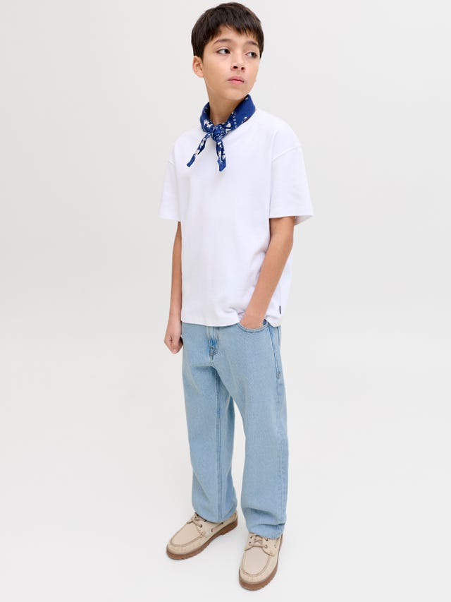 Our slim-fit jeans for boys are ideal for those who don't like their jeans to be too tight or too loose. They are the perfect middle ground between skinny and regular jeans, because although they have a straight leg, they are still narrow in the thigh. If you want to make a stylish impression on your friends, you can combine slim-fit jeans with a destroyed look with a cool print T-shirt, sneakers and a bomber jacket. Or you're like us and you can't get enough of denim fashion, then choose one of our jeans-style boys' jackets and create a cool denim on denim look and amaze your friends.