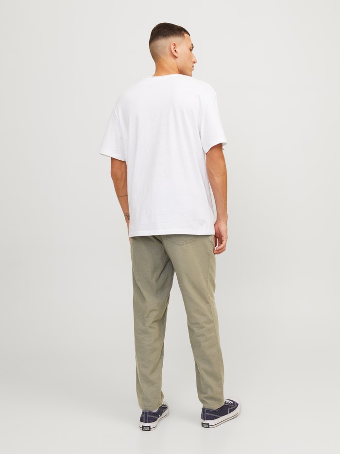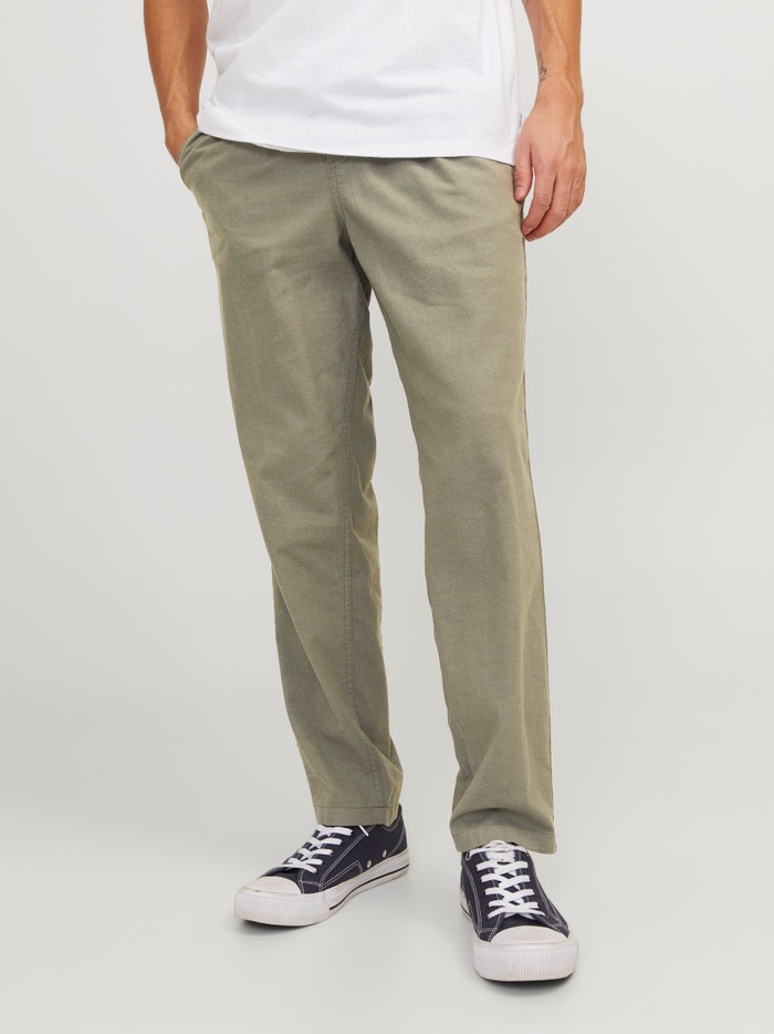 - 83% Cotton, 15% Linen, 2% Elastane