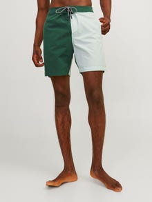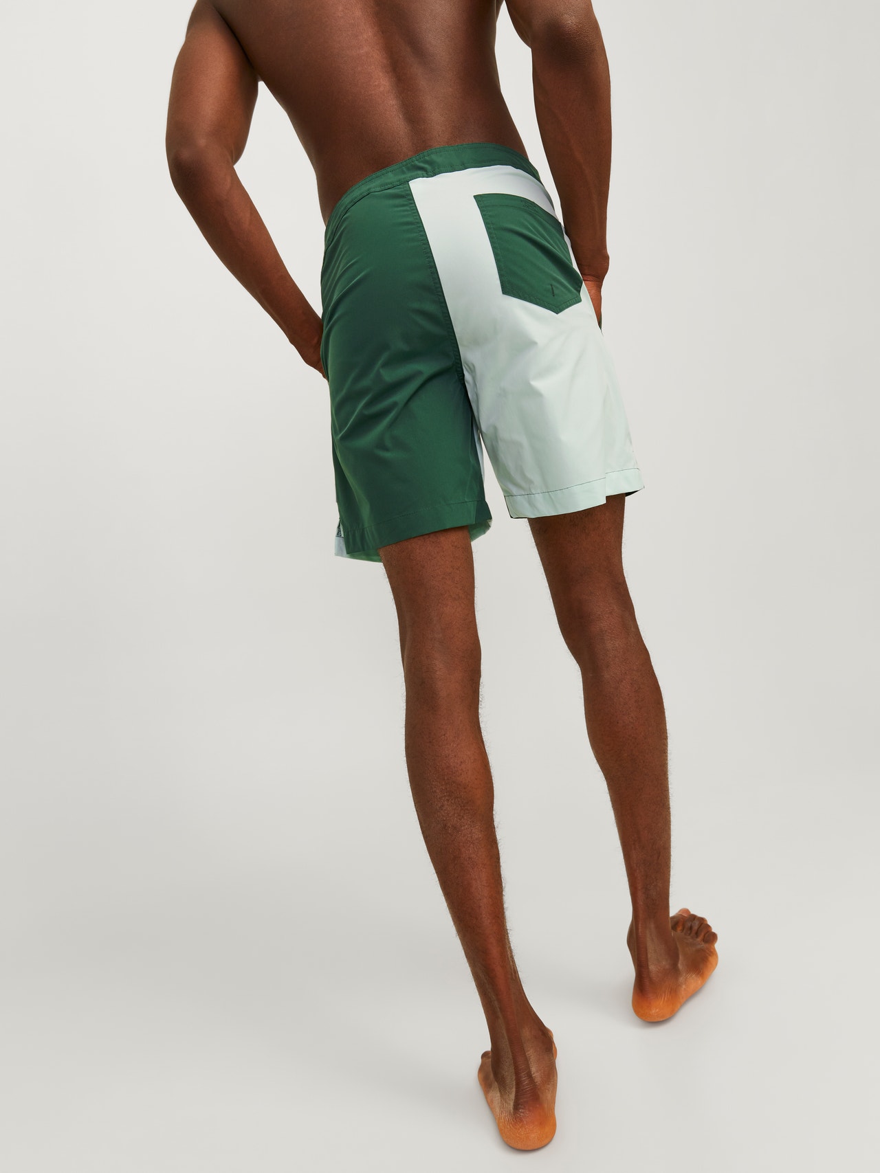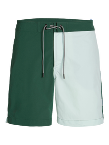 Пригответе се за плажа в тези удобни плувни шорти, направени от смес от рециклирани влакна. Тъканият плат е здрав и издръжлив материал, който не се разтяга като плетените тъкани. - Тип на продукта : Шорти за плуване с редовна кройка - Джобове : Предни джобове - Талията : Средно покачване - Допълнителни детайли : Шнур на талията - Ставам : Редовни шорти за плуване със средна дължина