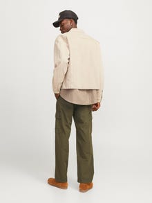 Ежедневното облекло е спокойно и подходящо за ежедневна употреба. Ripstop тъканта се определя от нейната техника за подсилване, която предотвратява разпространението на разкъсванията. Той е лек, изключително издръжлив и устойчив на разкъсване. - Тип на продукта : Свободни панталони - Затваряне : Закопчаване с цип - Джобове : Задни джобове, Предни джобове - Талията : Средно покачване - Ставам : Свободно прилягане с високо издигане, свободно бедро, коляно и отваряне на крака
