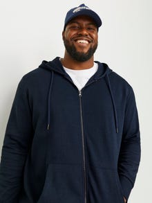 Plus Size Ensfarvet Hættetrøje med lynlås
