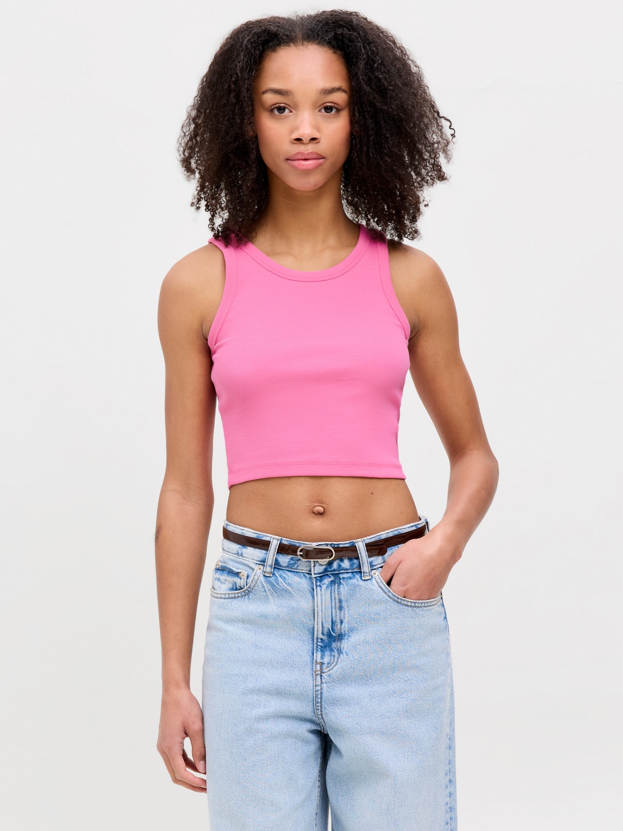 Denne garderobe-essentielle passer til stort set alt. Fra stramme jeans til loungewear er basic-toppen et must-have.