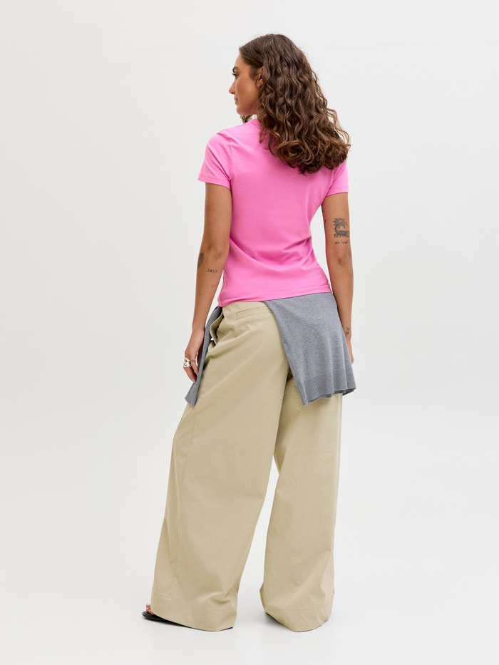 Denne basic T-shirt er en uundværlig garderobe, der fungerer godt sammen med jeans, shorts og bukser.