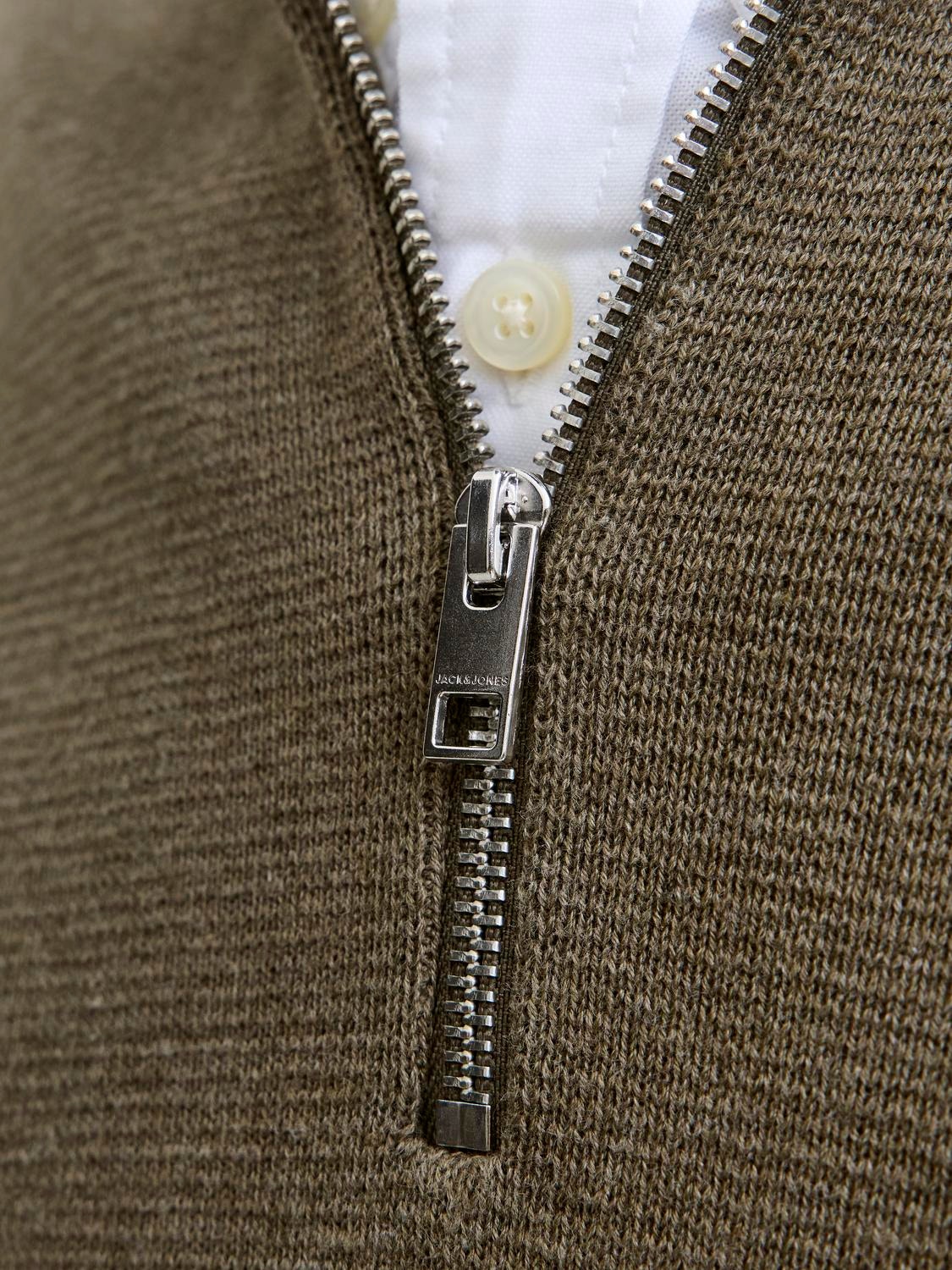 Ensfarvet Striktrøje med Kvart lynlås