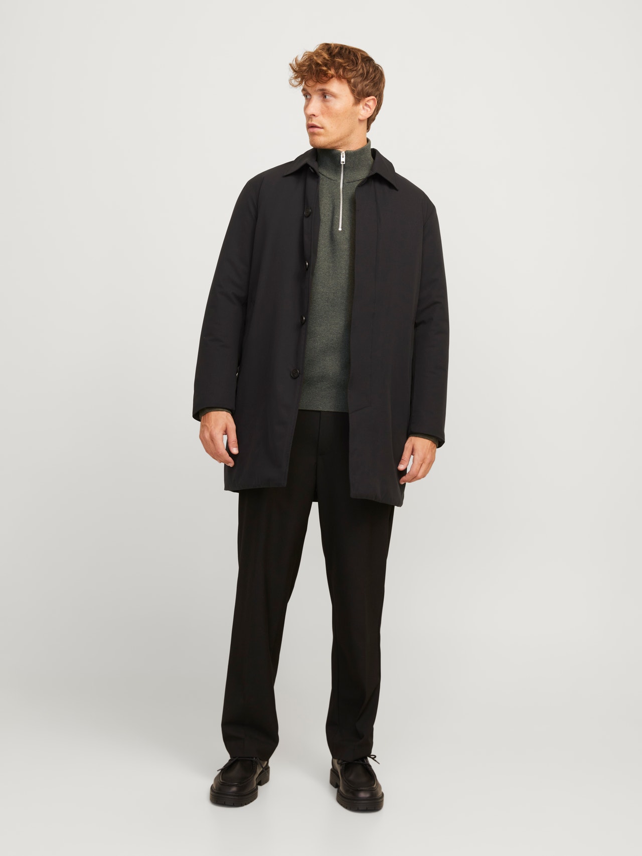 Ensfarvet Striktrøje med Kvart lynlås