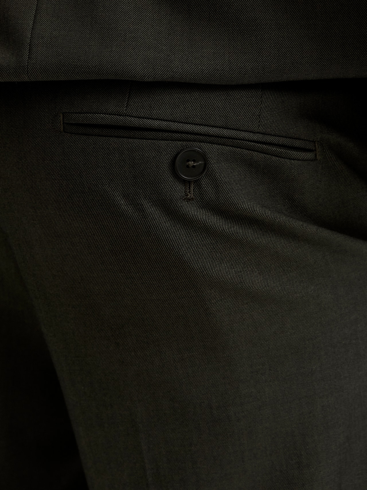 Twill er et slidstærkt, vævet materiale, der er kendetegnet ved sit karakteristiske "V"- eller "W"-mønster, som skaber et klassisk look.