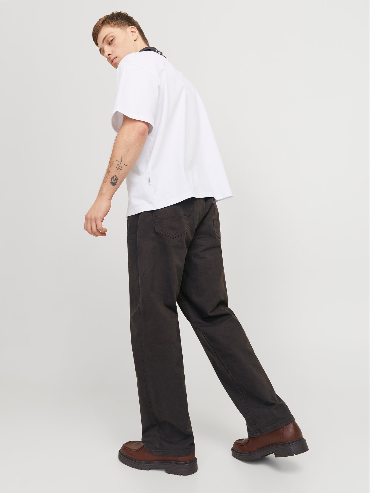Casualwear er afslappet og velegnet til hverdagsbrug. Twill er et slidstærkt, vævet materiale, der er kendetegnet ved sit karakteristiske "V"- eller "W"-mønster, som skaber et klassisk look. - Produkttype : Klassiske bukser - Lukning : Gylp med knaplukning - Lommer : Baglommer, Forlommer, Møntlomme - Talje : Mid rise - Vask/behandling : Light wash for et udvasket og lyst denim-look - Pasform : Vil du have en pasform med masser af plads over det hele, kan du prøve vores wide fit. Det har vidde omkring låret, er løs omkring knæene og i benåbningerne og er den perfekte pasform, hvis du gerne vil have et look med vide ben, uden at det er alt for overdrevet.