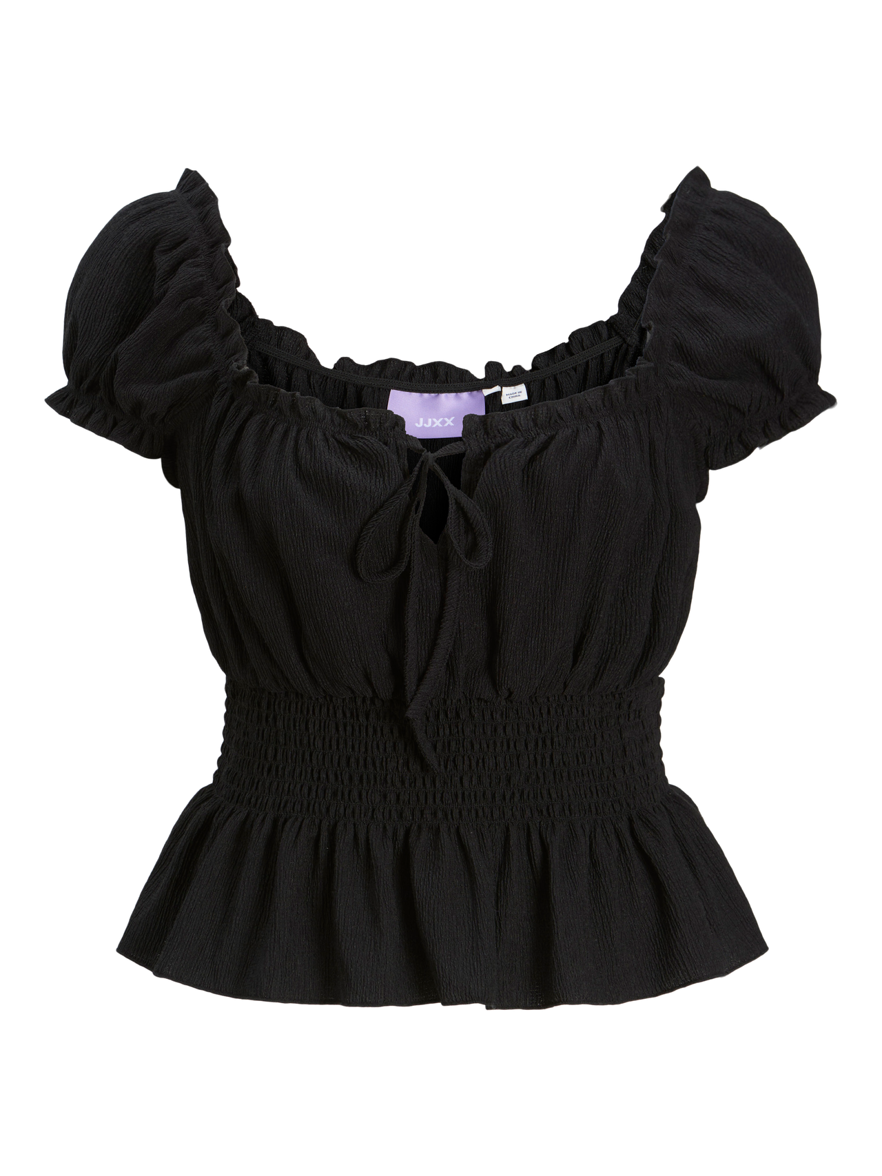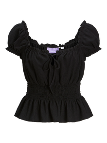 Vær den bedst klædte gæst med vores feststyle. Jacquard er et mønster, der er vævet direkte ind i stoffet i stedet for at være broderet eller trykt. Det er holdbart og stærkt og har en flot struktur uden at rynke. - Produkttype : Top - Hals : U-hals - Ærme : Korte ærmer - Detaljer : Smock-detalje - Pasform : Stretch fit