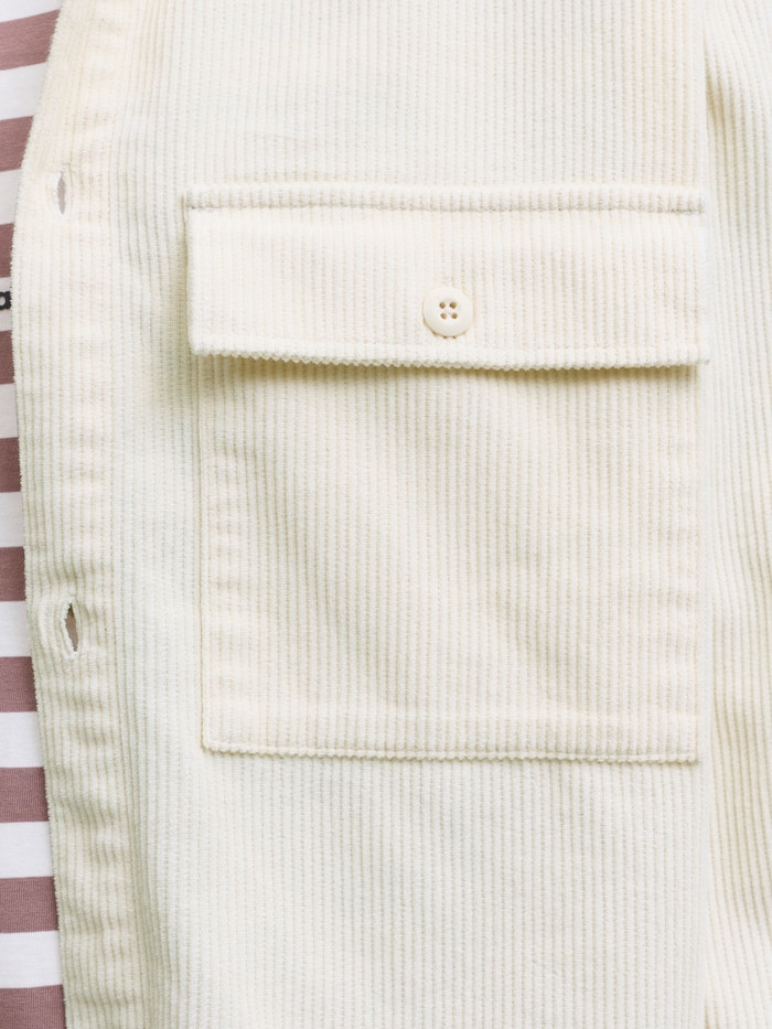 Corduroy er et ribbet, fløjlsagtigt materiale med en tyk struktur, der giver varme og volumen.
