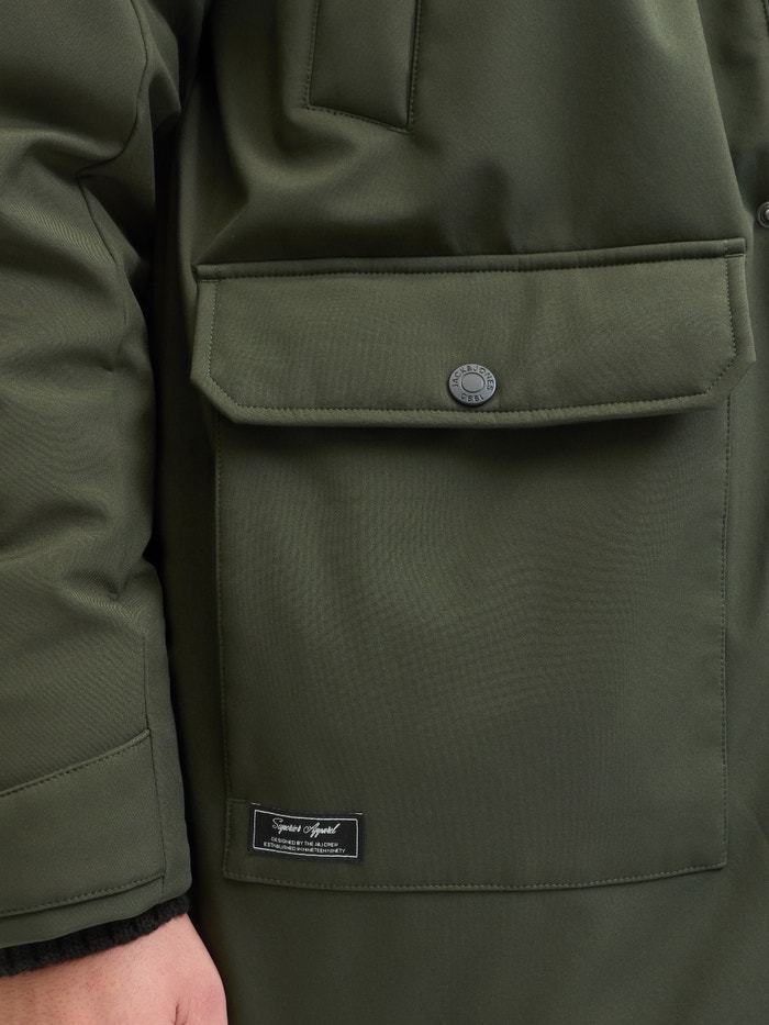 - Ydre 1: 100% Polyester; Ydre 2: 100% Polyester; For: 100% Polyester; Ærme: 100% Polyester; Polstring: 100% Polyester