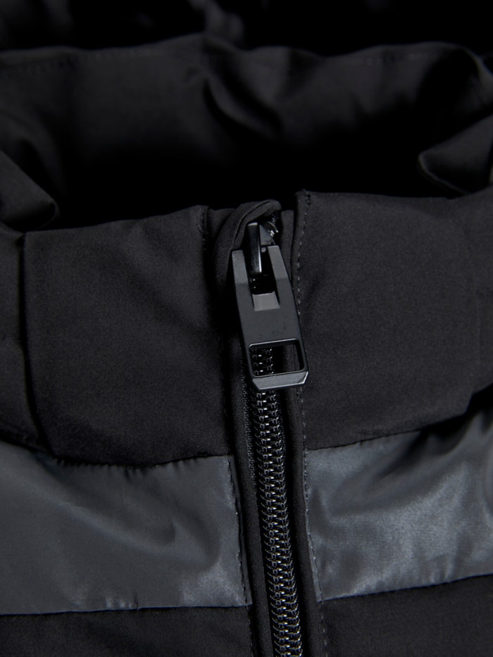 - Ydre: 100% Genanvendt polyester; Ærme: 100% Genanvendt polyester; For: 100% Genanvendt polyester; Polstring: 100% Genanvendt polyester; Ribbet: 100% Genanvendt polyester