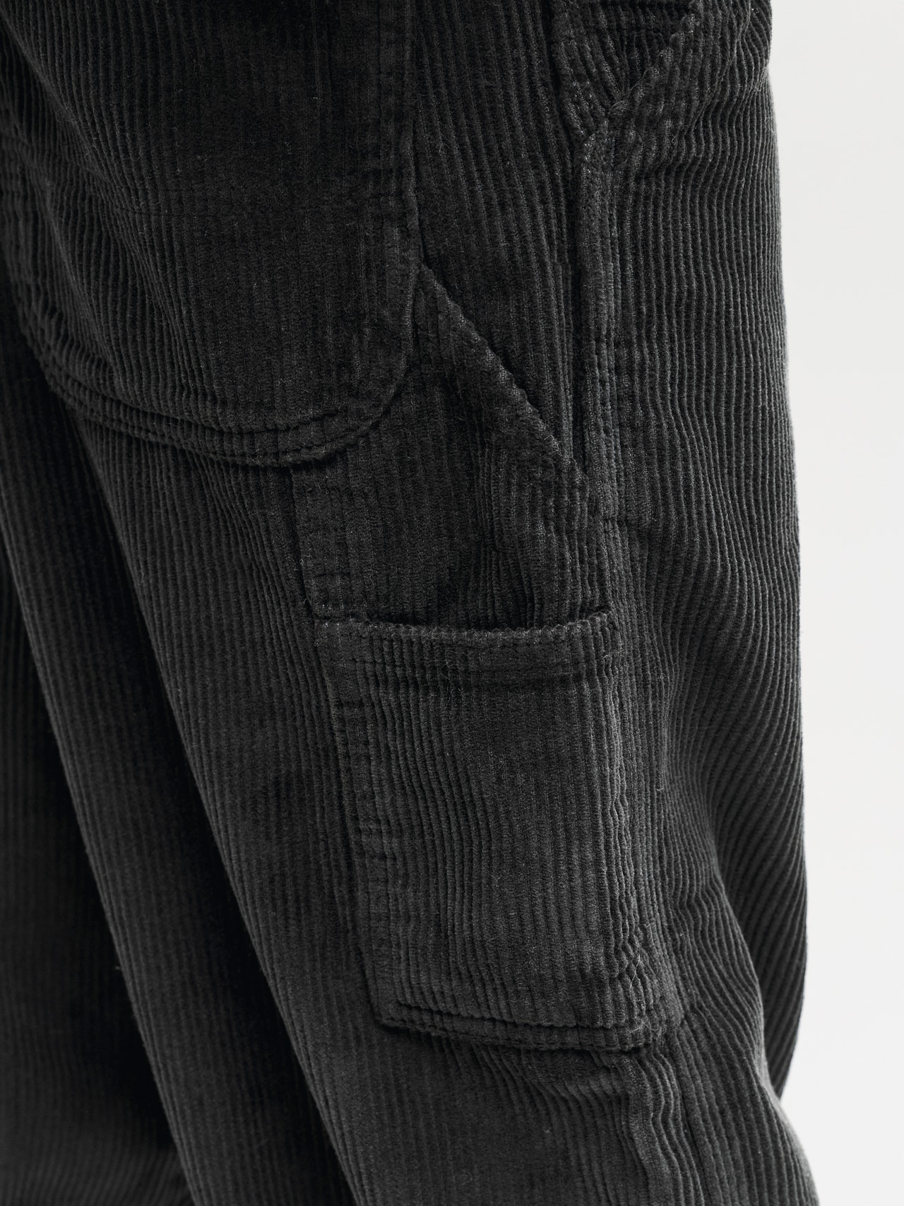 Corduroy er et ribbet, fløjlsagtigt materiale med en tyk struktur, der giver varme og volumen.