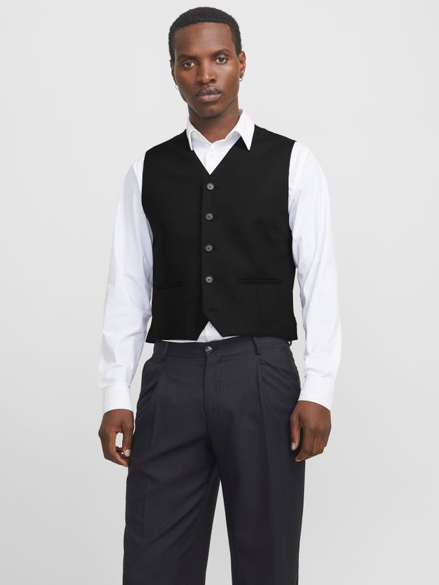 Falls du noch einen draufsetzen willst, kannst du auch eine Anzugweste dazu stylen. Die lassen sich auch gut im Alltag tragen, wenn du z.B einen coolen Stoffmix wählst und ein Basic T-Shirt dazu kombinierst.