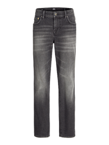 Original ist eine klassische Five-Pocket-Jeans: zeitlos, unkompliziert und so, wie man sie seit den Anfängen kennt - das macht sie zu etwas auf das man sich verlassen kann, wie es eine gute Jeans sein sollte. Denim ist ein robustes Köpergewebe aus gefärbten Kettfäden und ungefärbten Schussfäden. Entdecke die aufregende Welt von Jack and Jones Junior, in der Mode durch jugendliche Energie und lebhaften Charme zum Leben erweckt wird. Unsere Kollektionen bieten eine Mischung aus neuen, trendigen Designs, die Jungen im Alter von 3-16 Jahren ansprechen. Tauche in hochwertige und bequeme Styles ein, die speziell für junge Fashion-Liebhaber entwickelt wurden. Bei Jack and Jones Junior interpretieren wir Mode für Jungs im Alter von 3 bis 16 neu, indem wir coole Passformen und moderne Styles kombinieren und dabei immer wieder Elemente aus der Erwachsenenmode einfließen lassen.. - Produkttyp : Regular Fit Jeans - Verschluss : Reißverschluss - Taschen : Gesäßtaschen, Münztasche, Taschen vorn - Taille : Mid Rise - Waschen : Stonewashed für einen Used-Look mit Faded-Effekten - Körperform : Mini - Passform : Klassischer Regular Fit vom Oberschenkel bis zur Beinöffnung. Das ist die perfekte Passform für alle, die sich etwas mehr Platz und eine normale Bundhöhe wünschen. Unser Regular Fit hat immer einen Stretchanteil für volle Bewegungsfreiheit