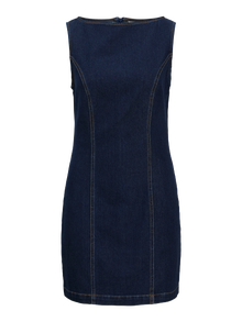 Verwandeln Sie Ihren Alltagslook mit unseren edlen Denim-Stücken. Diese Stücke zeichnen sich durch besondere Details aus, die sie über das Gewöhnliche hinaus heben und eine Mischung aus klassischem Komfort und modernem Stil bieten. Perfekt für alle, die ihrer Garderobe einen Hauch von Persönlichkeit verleihen möchten, verleihen sie jedem Outfit ein frisches und unverwechselbares Flair. Denim ist ein strapazierfähiger Köperstoff, der sich durch einen gefärbten Kettfaden und einen Schuss auszeichnet, die miteinander verwoben sind. - Produkttyp : Jeanskleid - Hals : Rundhals - Ärmel : Ohne Ärmel - Verschluss : Reißverschluss - Länge/Größe : Mini-Länge - Details : Ziernähte vorn - Waschen : Rinse Wash zum Entfernen überschüssiger Farbe für ein weiches Tragegefühl und den originalen Jeanslook - Passform : Slim Fit