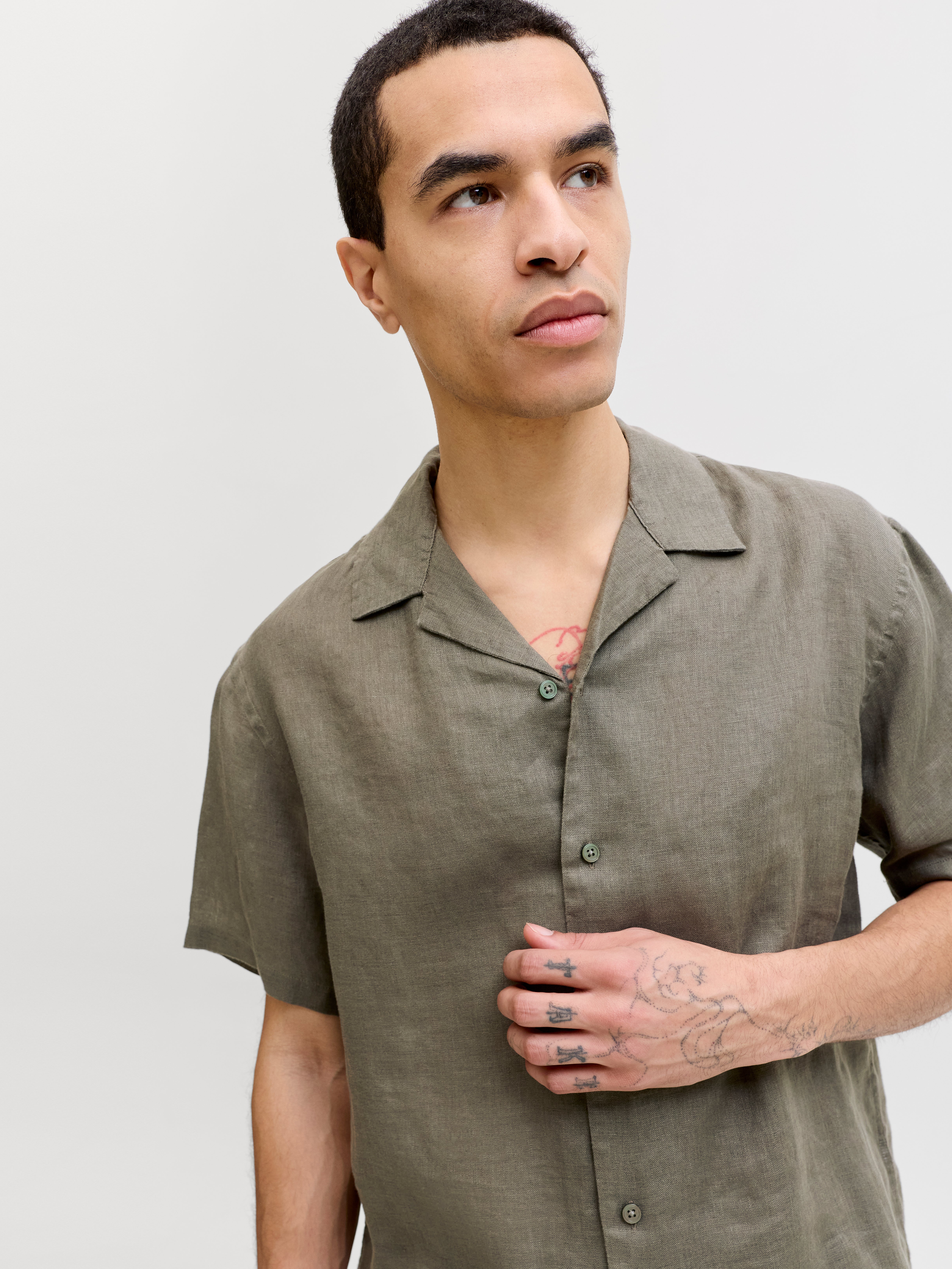 Eine leichte und atmungsaktive Leinenqualität mit einer natürlichen, luftigen Textur, die Sie bequem hält.