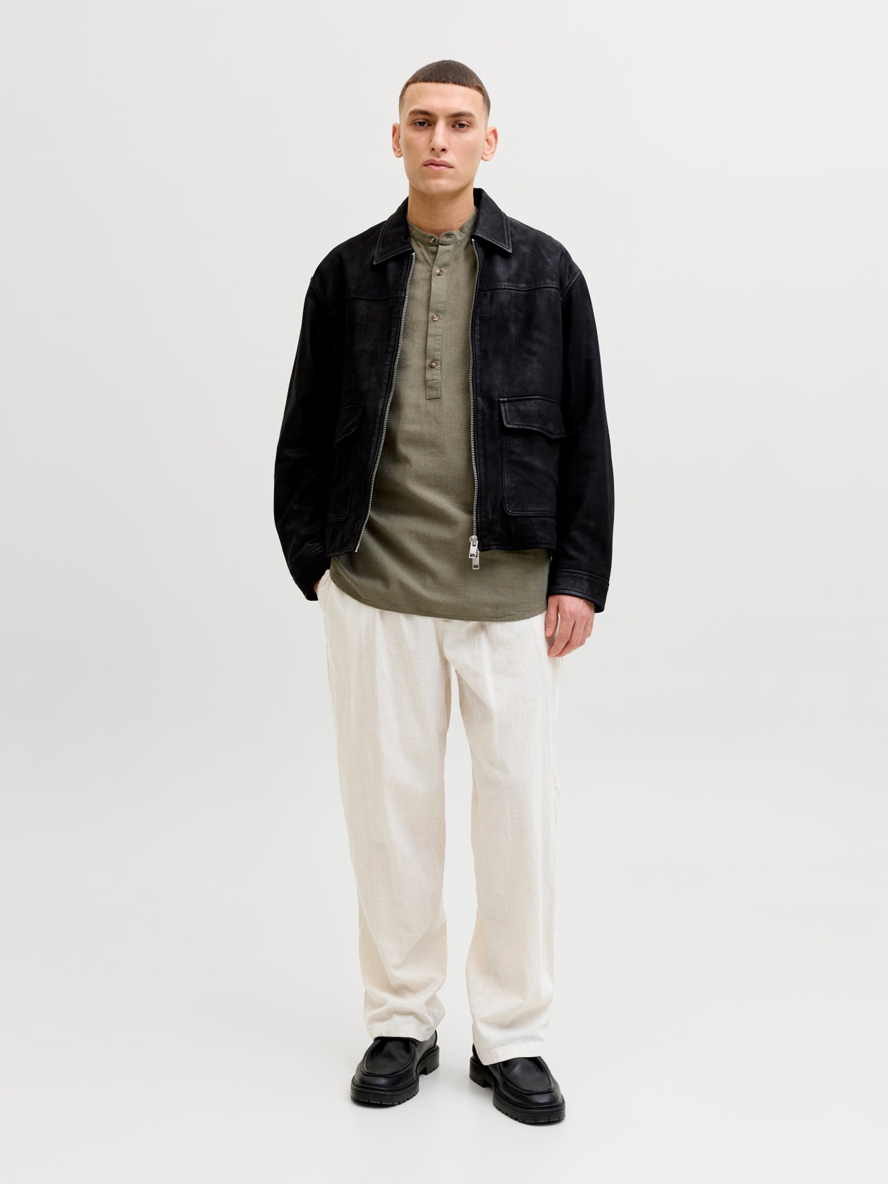 - 81% Baumwolle, 15% Leinen, 4% Elasthan