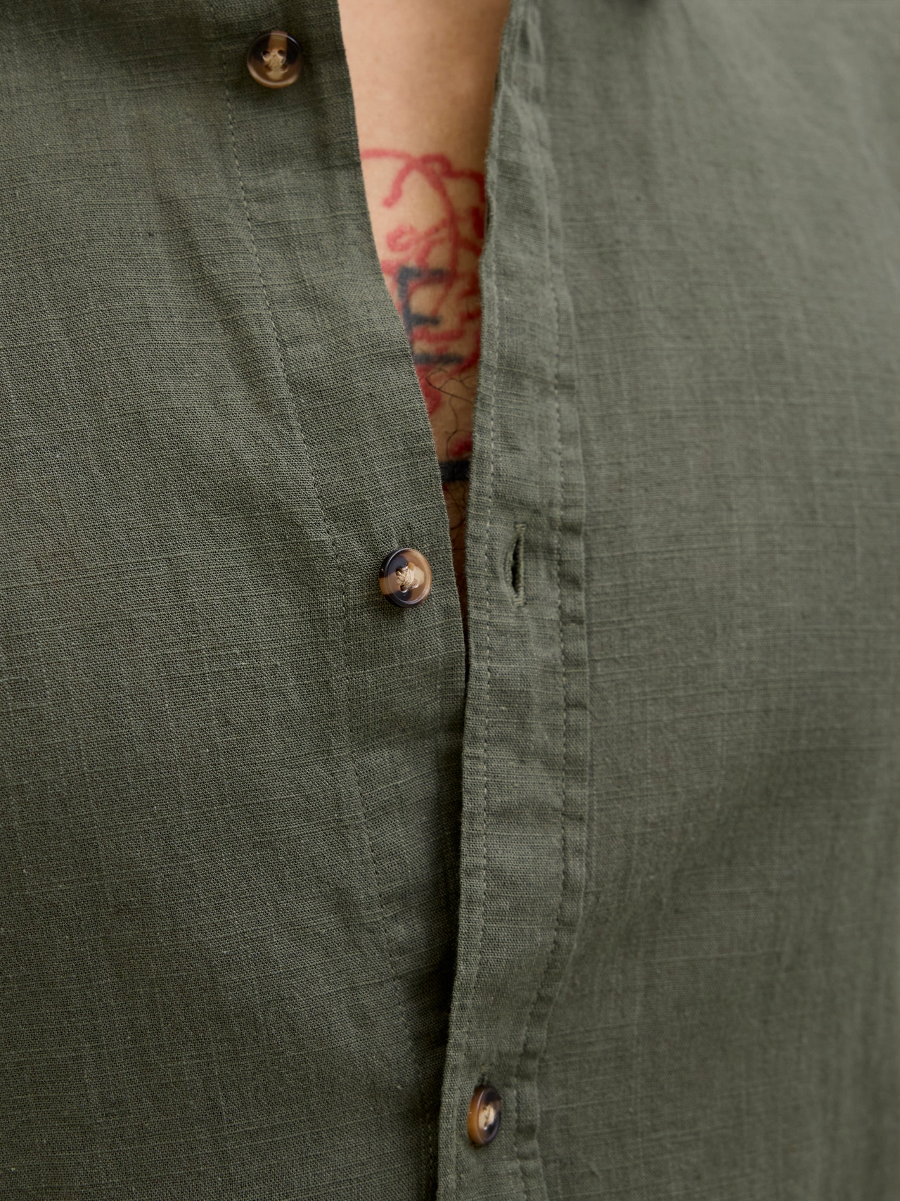 - Material: 63% Baumwolle, 20% Recycelte Baumwolle, 17% Leinen