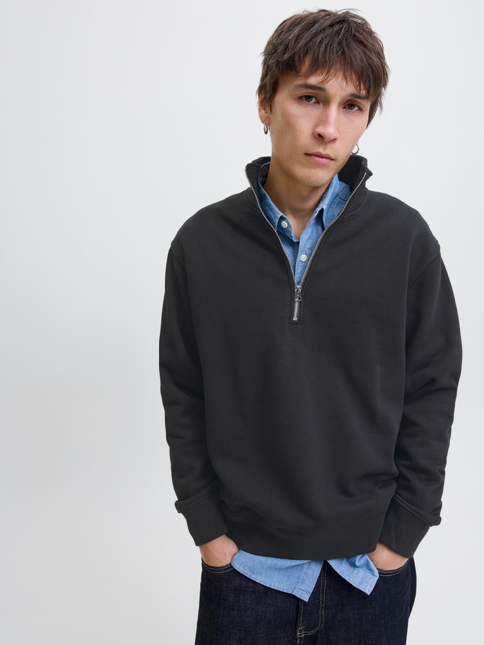 Einfarbig Sweatshirt mit halbem Reißverschluss