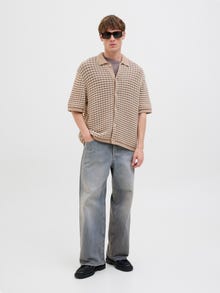 Schalte in den Entspannungsmodus mit diesem Strickpullover, der zum Faulenzen einlädt. Flachstrick ist ein gestricktes Gewebe, das bequem und dehnbar ist. - Produkttyp : Gestrickter Rollkragen - Hals : Polokragen - Ärmel : Kurzarm - Ärmel : Tief angesetzte Schulter - Verschluss : Knopfleiste - Passform : Locker geschnitten