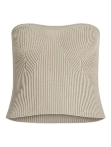 Style mit diesem Strickteil einen partytauglichen Look. Rippstrick hat Längsrippen und ist besonders dehnbar für ein bequemes Tragegefühl. - Produkttyp : Gestricktes Oberteil - Hals : Schulterfrei - Ärmel : Ohne Ärmel - Passform : Gerippt