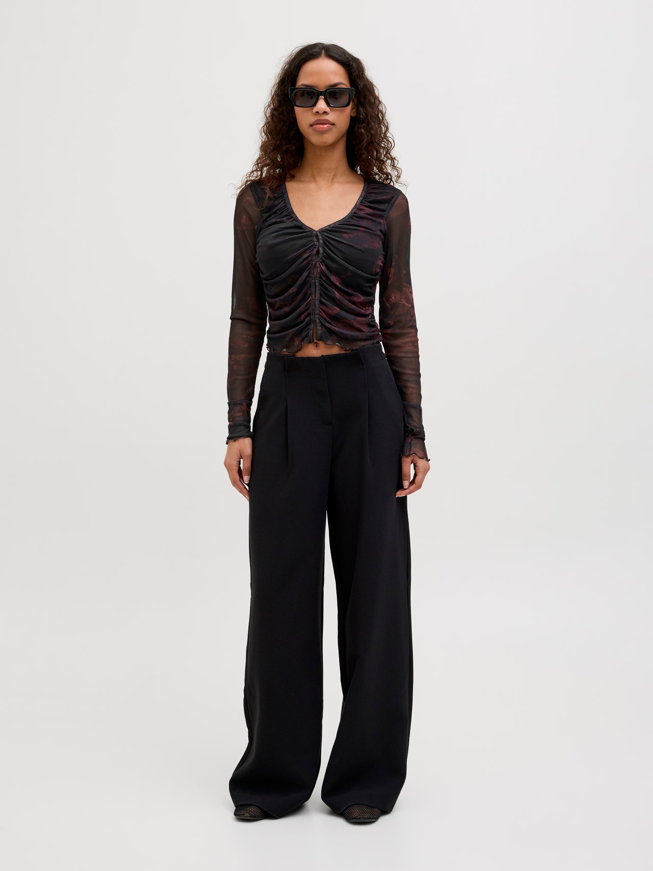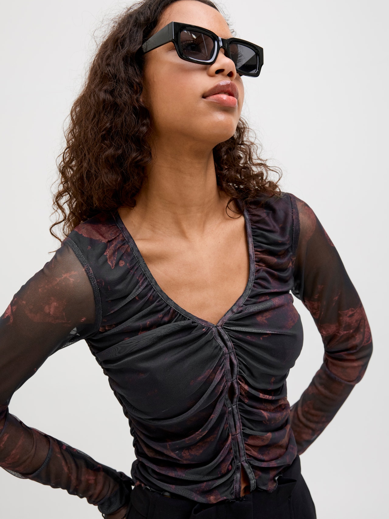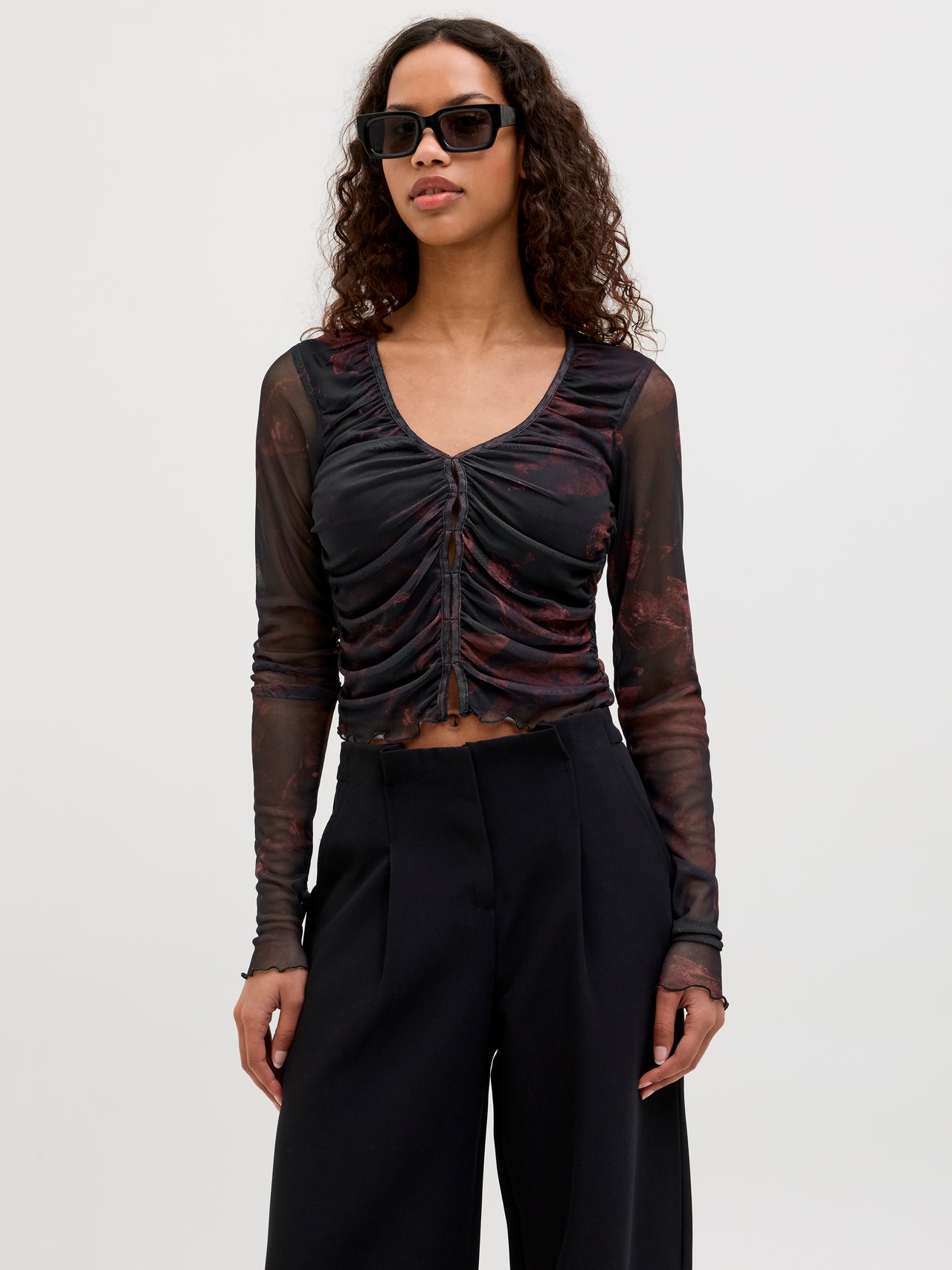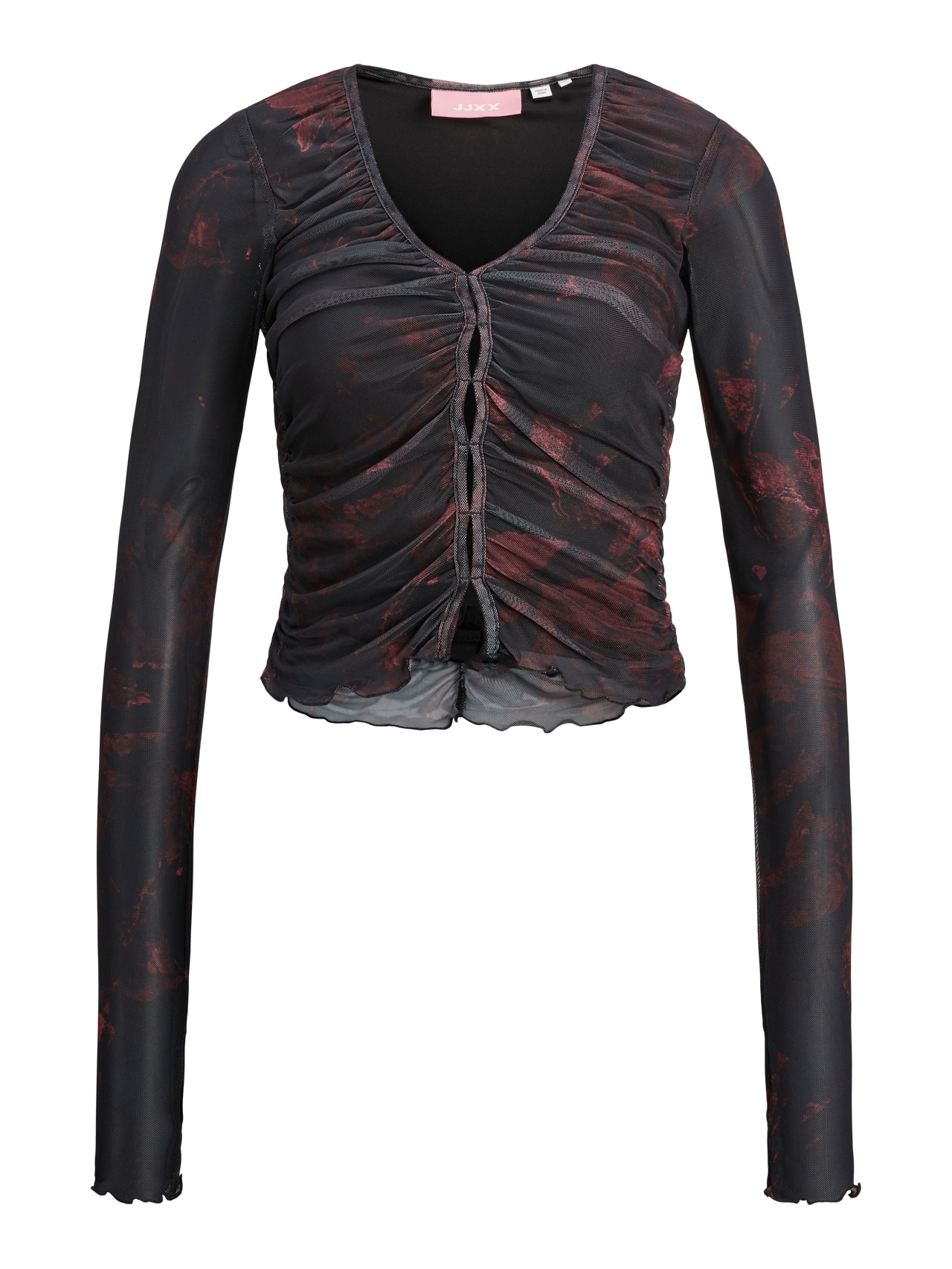 Φορέστε ένα κομψό μπλουζάκι και ετοιμαστείτε για μια βραδινή έξοδο. Το ύφασμα mesh είναι ένα ελαστικό, ελαφρύ και διαφανές ύφασμα που έχει πλέγμα παρόμοιο με τα διχτυωτά υφάσματα. - Τύπος προϊόντος : Μπλούζα - λαιμόκοψης : Λαιμόκοψη V - Μανίκι : Μακριά μανίκια - Εφαρμοστό : Ελαστική εφαρμογή