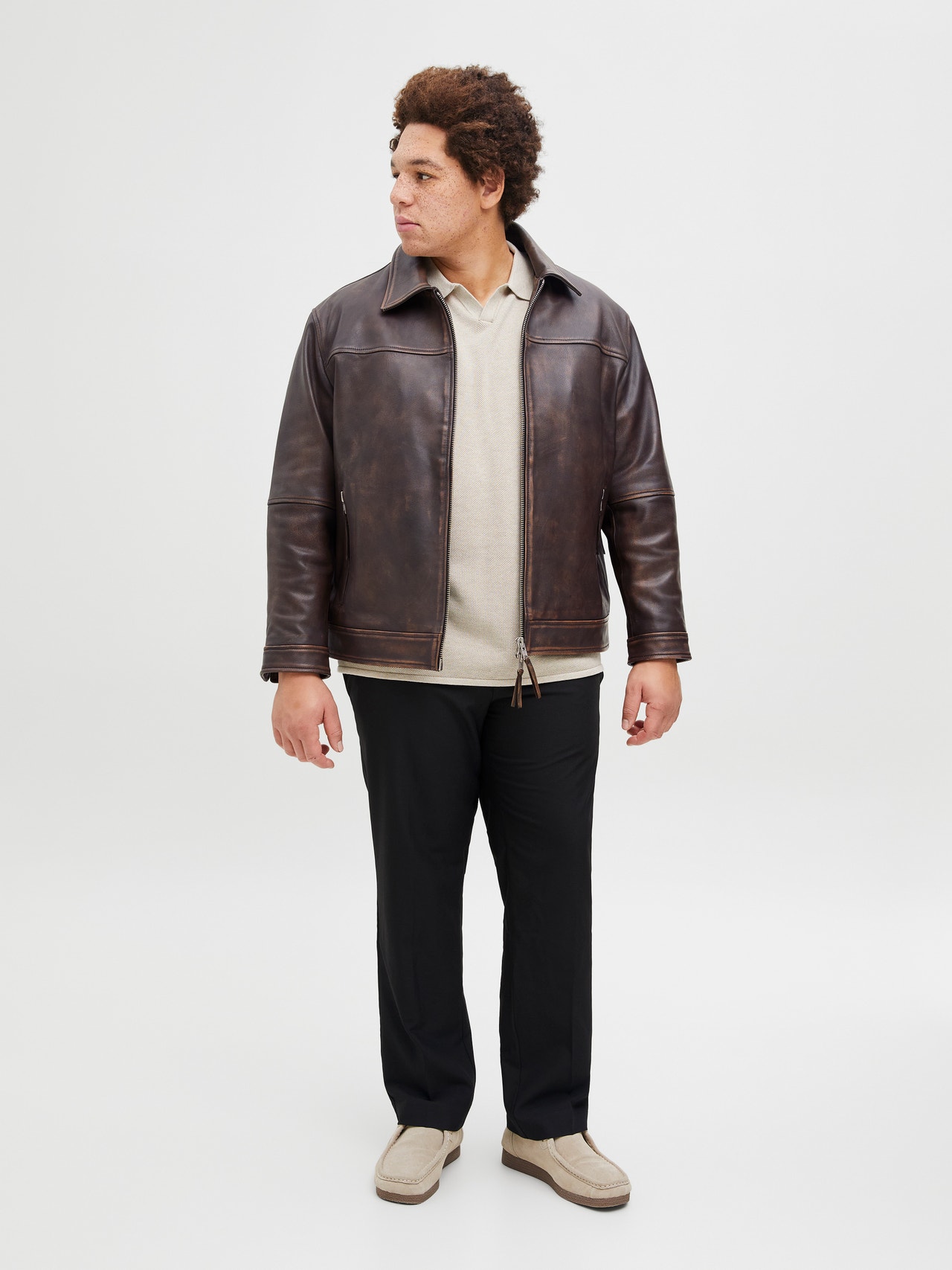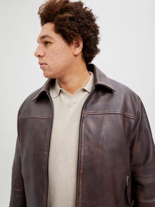 Keep it casual with a quality jacket for everyday wear. Leather is soft, naturally water-resistant and long-lasting, making it an investment that can last for years. Plus styles are designed to fit plus-size bodies. - Product Type : Leather jacket - Functionality : Water-resistant - Neck : Spread collar - Sleeve : Long sleeves - Cuffs : Zipped cuffs - Closing : Zip fastening - Pockets : Front pockets - Body Type : Plus