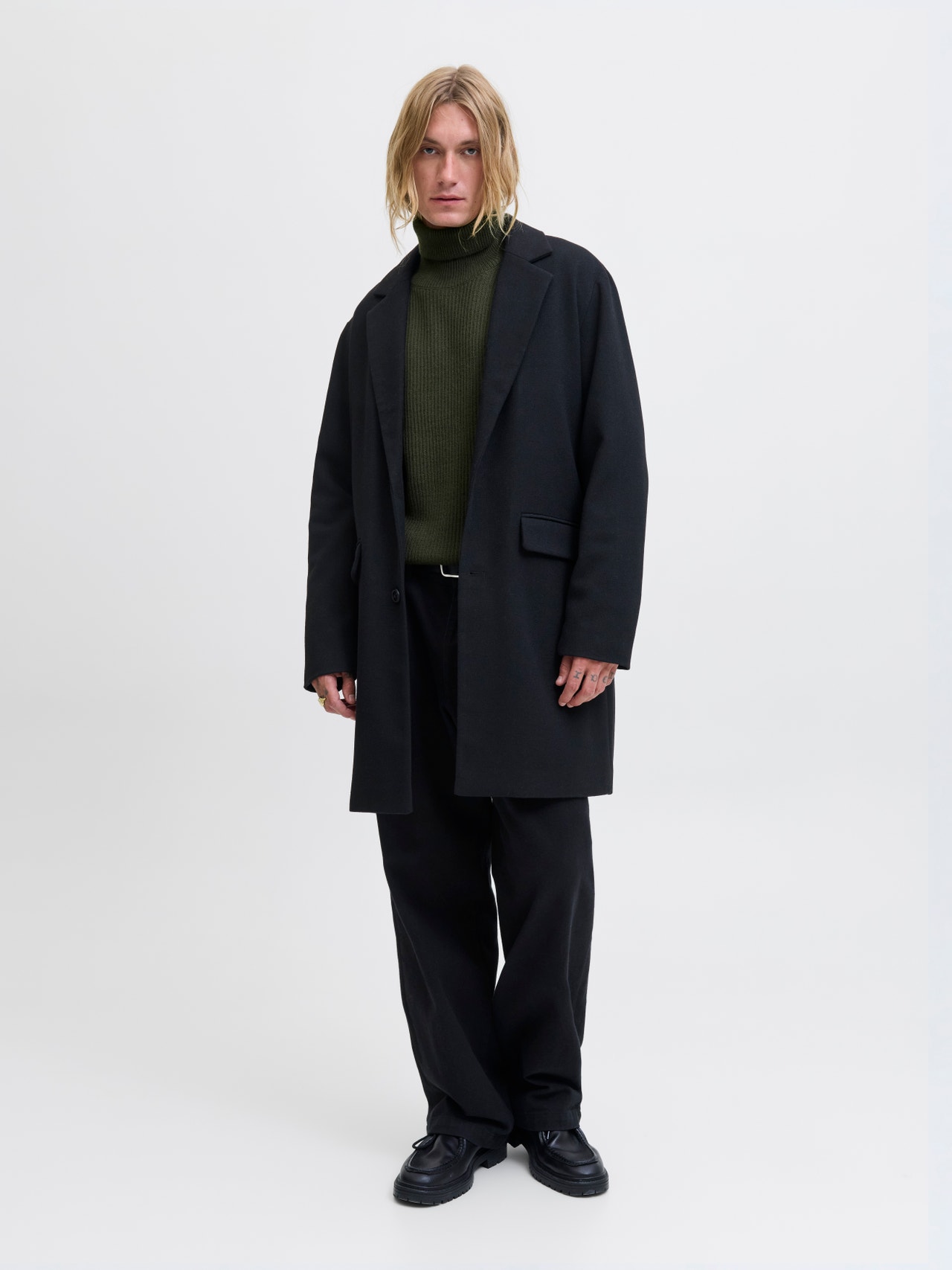This basic knit goes with everything in your wardrobe. Flat knit is a knitted fabric with comfort and flexibility. - Product Type : Knitted pullover - Neck : Roll neck - Sleeve : Long sleeves - Sleeves : Set in sleeves - Fit : Relaxed Fit