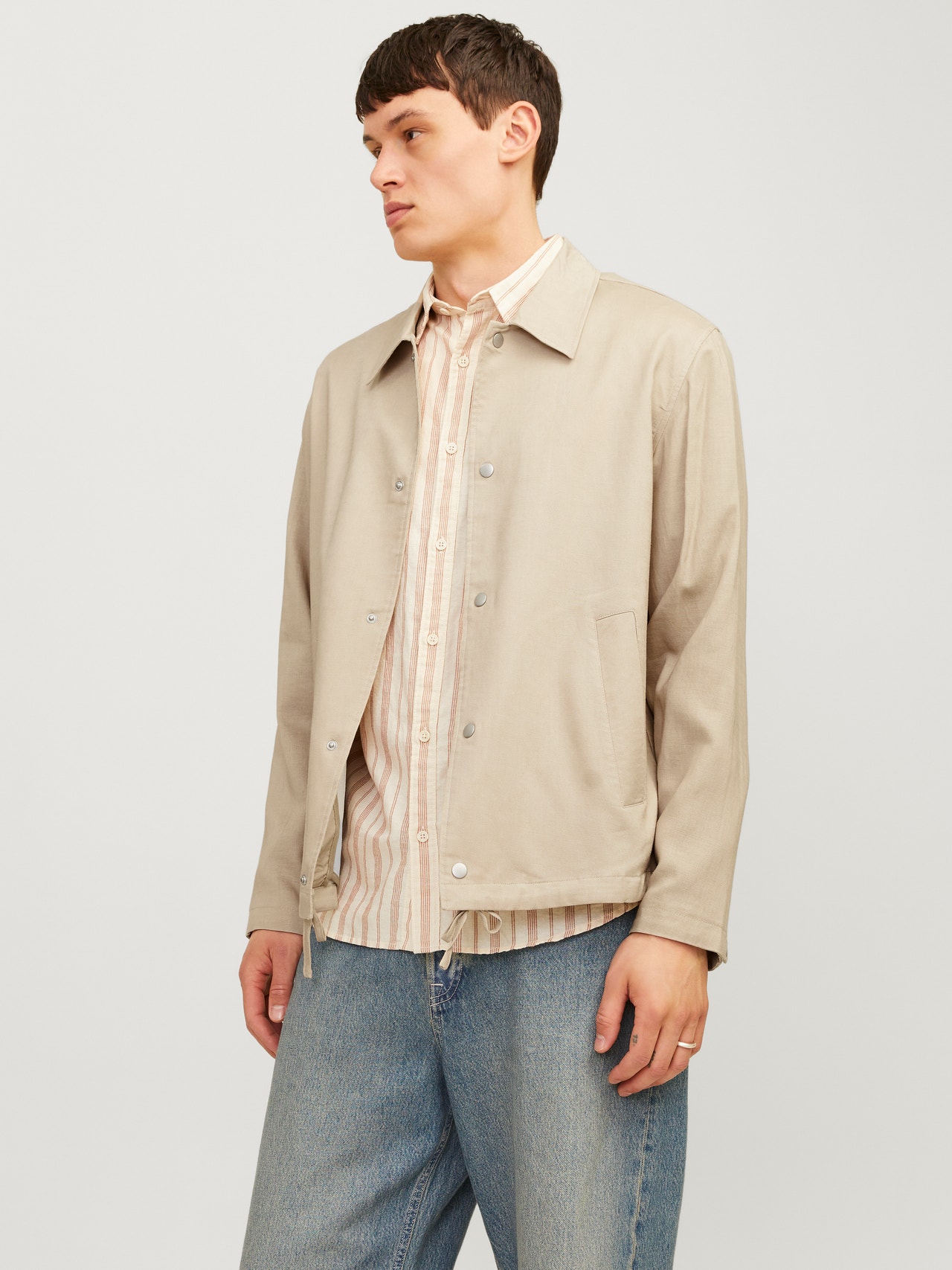 Keep it casual with a quality jacket for everyday wear. Lightweight fabric is thin and light for a breathable and comfortable feel. - Product Type : Shell jacket - Neck : Spread collar - Sleeve : Long sleeves - Closing : Button fastening - Pockets : Front pockets - Extra details : Drawstring at waist