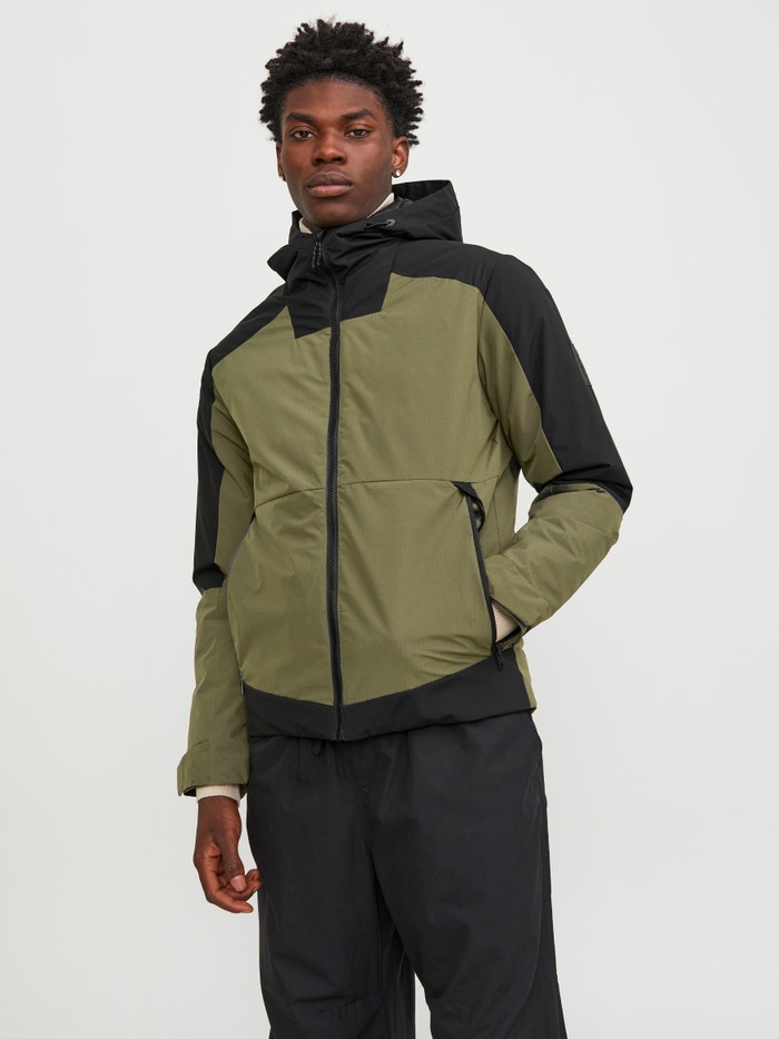 - Closing : Fully zipped storm placket