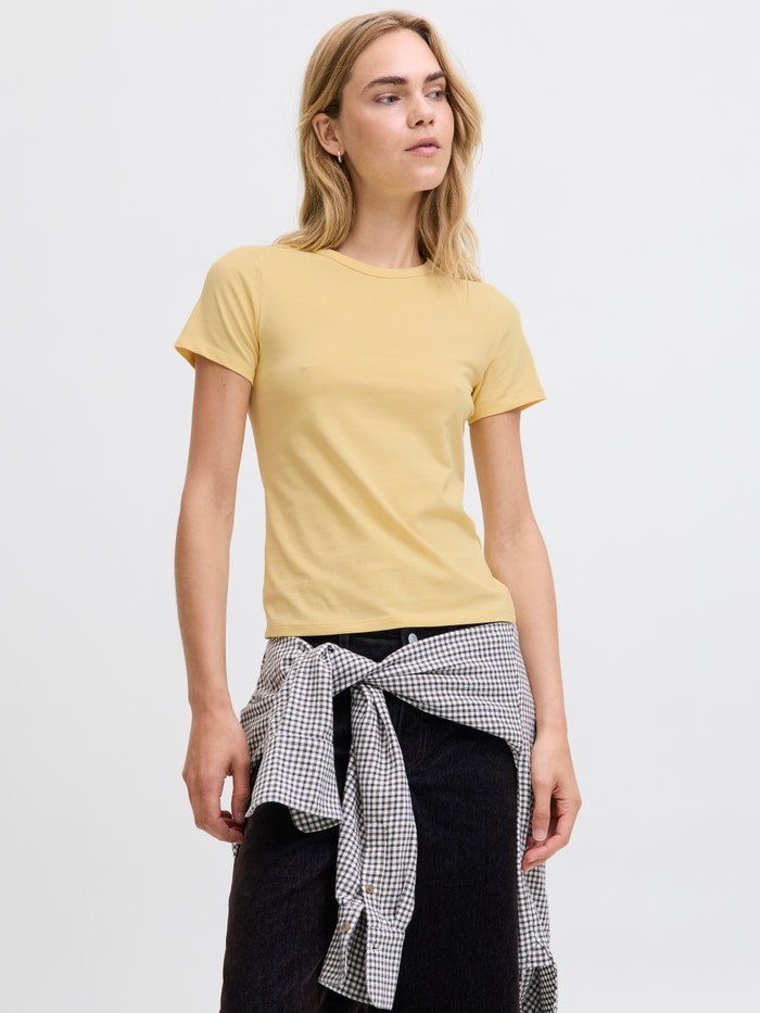 This basic T-shirt is a wardrobe essential that works well with jeans, shorts, and trousers.