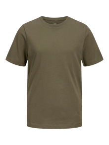 Esta camiseta es una prenda que no puede faltar en tu armario y combina con jeans, shorts y pantalones. El jersey cepillado es elástico y suave al tacto, ideal para vestir a diario. ¡Descubre el mundo cool de Jack and Jones Junior, donde la moda cobra vida con un estallido de energía juvenil y un encanto contagioso! Nuestras colecciones son una mezcla de diseños frescos, a la moda y con estilo pensado para niños de 3 a 16 años. Sumérgete en prendas cómodas y de calidad que acentúan la moda para chicos. Desde cortes modernos hasta diseños contemporáneos, Jack and Jones Junior redefine la moda para niños de 3 a 16 años y refleja el espíritu de los grandes en cada prenda.. - Artículo : Camiseta - Cuello : Cuello redondo - Manga : Manga corta - Corte : Corte regular