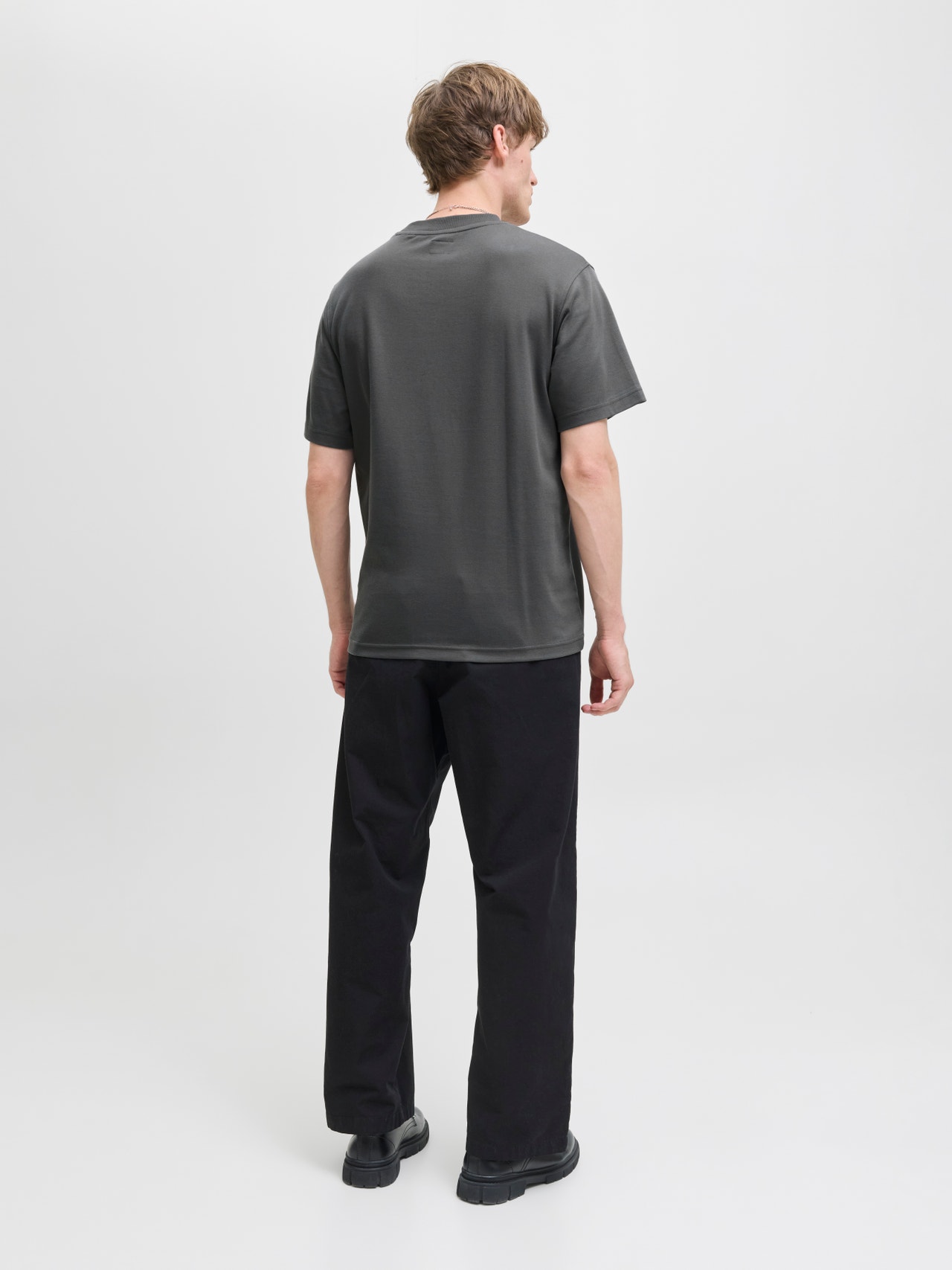 No existe nada más básico que una camiseta. Puedes combinarla con lo que sea. El jersey cepillado es elástico y suave al tacto, ideal para vestir a diario. - Artículo : Camiseta - Cuello : Cuello redondo - Manga : Manga corta - Estampado : Estampado de goma para un tacto suave - Corte : Corte relaxed
