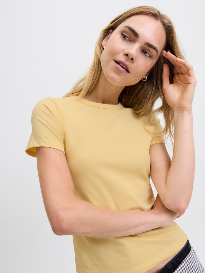 Esta camiseta básica es un básico de armario que combina bien con vaqueros, shorts y pantalones.