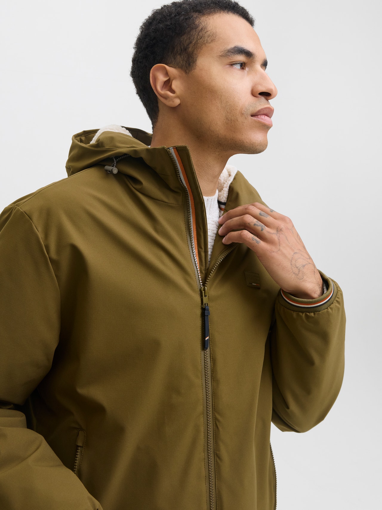 El modelo mide 183 cm y usa la talla L