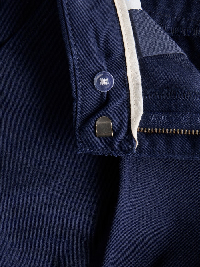 La sarga es un tejido duradero que se caracteriza por su característico patrón en "V" o "W" que crea un aspecto clásico.