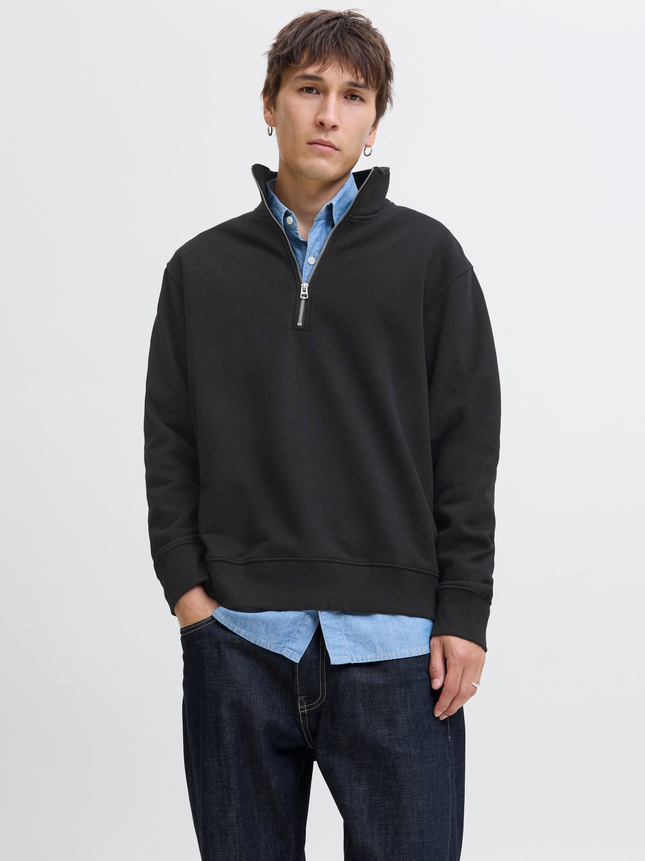 Sudadera con media cremallera Liso