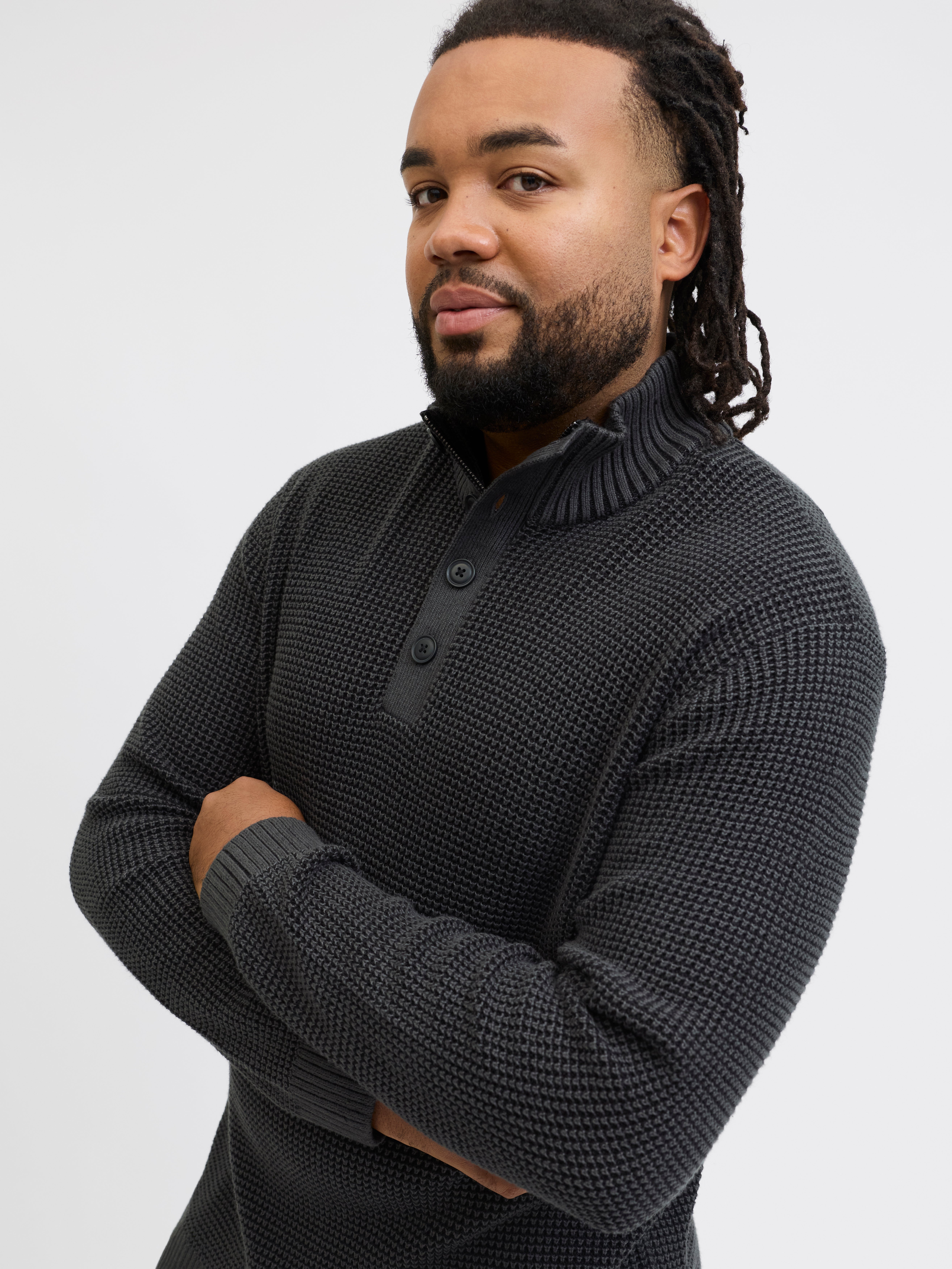 Elegancia y calidez se unen en una sola prenda: el jersey o cárdigan. Teniendo estas cualidades no puede faltar en ningún armario masculino, y donde digo ninguno, quiero decir absolutamente ninguno. Tampoco el armario de los hombres corpulentos. Por eso, en JACK & JONES ponemos a tu disposición una selección de jerséis y cardiganes en tallas grandes. Nuestra colección es (además de