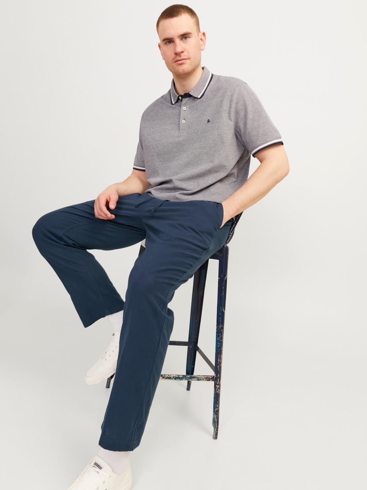 - 81% Puuvilla, 15% Pellava, 4% Elastaani