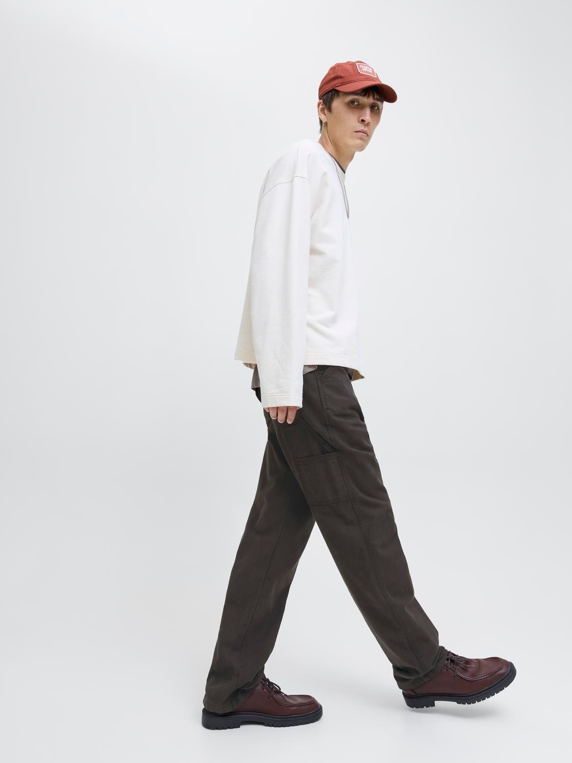 Luo siisti ja muodikas asu mukavilla housuilla ja korosta niiden toiminnallisia ominaisuuksia ja työvaatemaista fiilistä yhdistämällä ne collegepaidan ja lenkkareiden tai takin ja saappaiden kanssa.