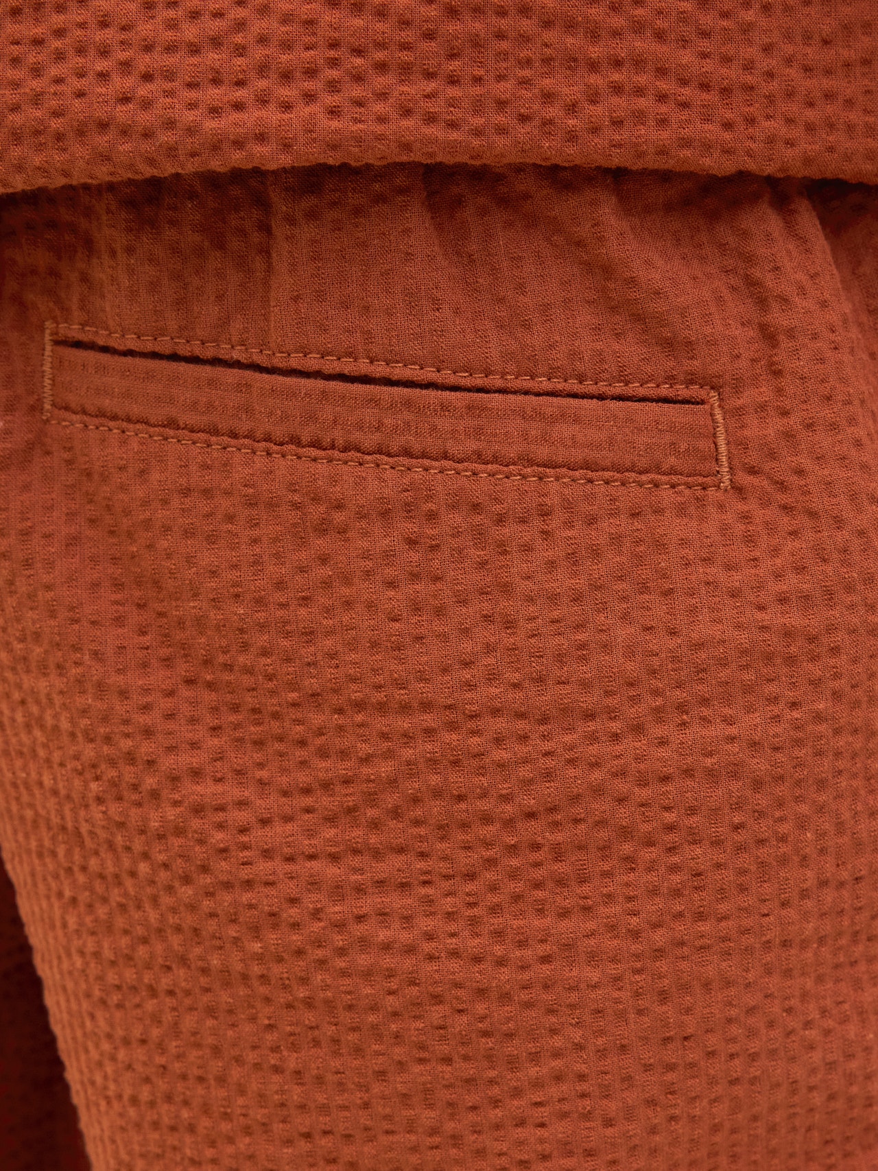 Dobby-kankaassa on pieniä geometrisiä kuvioita, jotka lisäävät tekstuuria hienostuneeseen ilmeeseen.