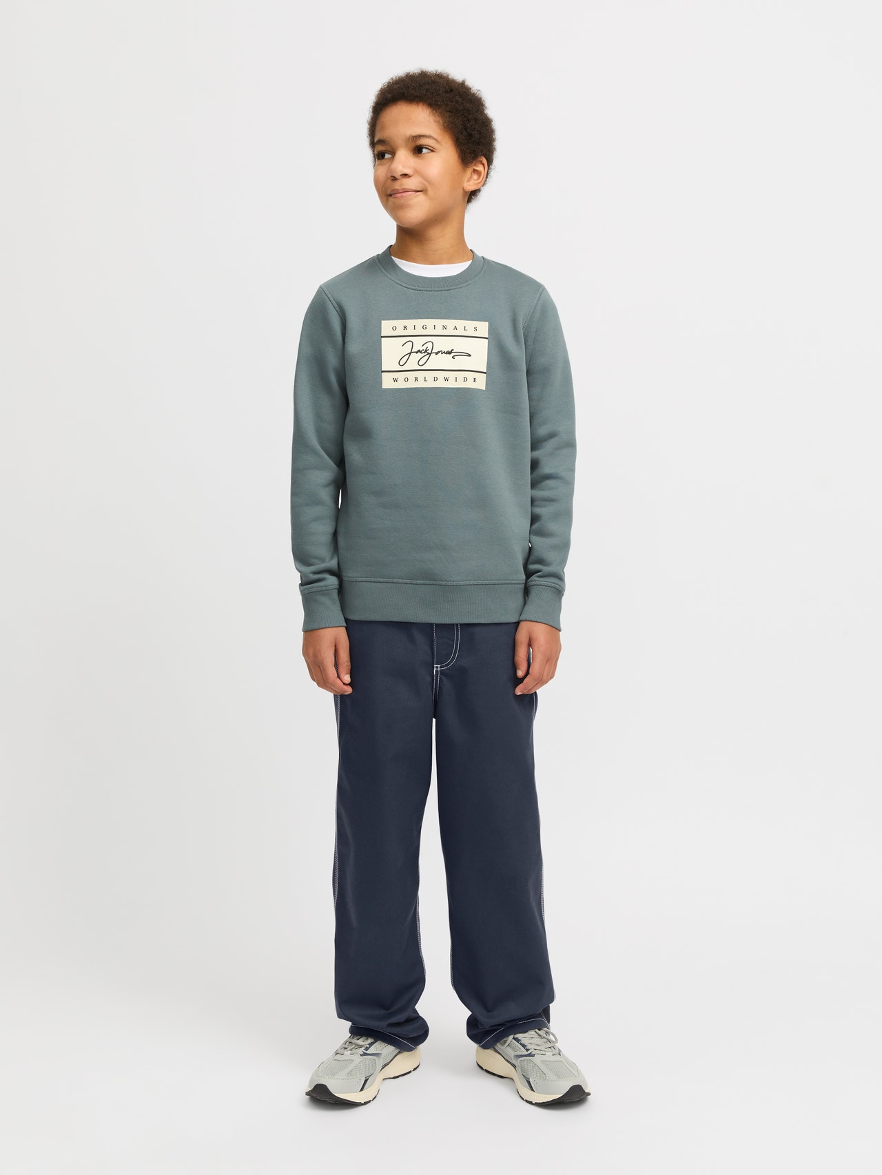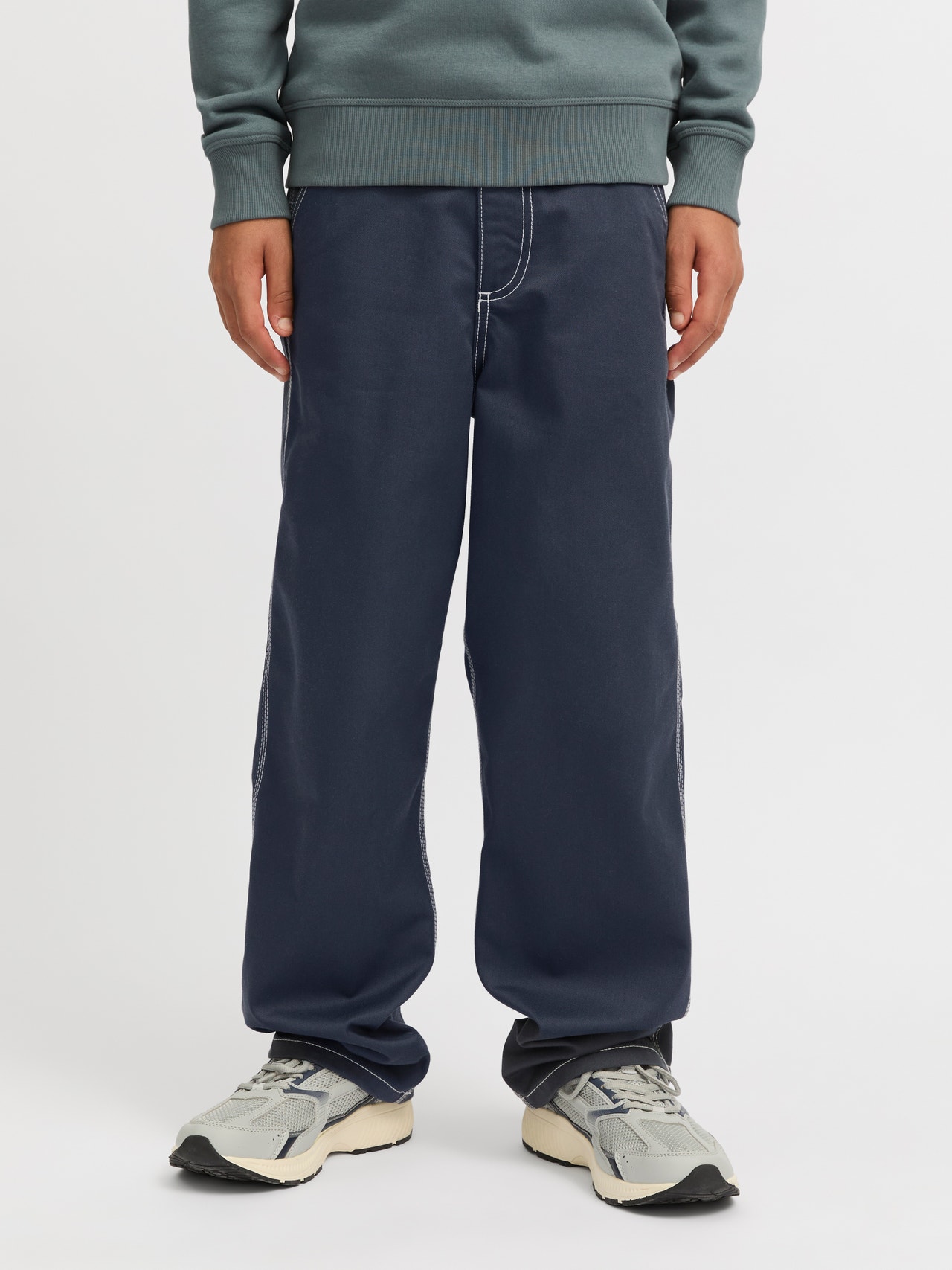 Luo siisti ja muodikas ilme mukavilla housuilla ja korosta niiden toiminnallisia ominaisuuksia ja työvaatemaista fiilistä yhdistämällä ne collegepaidan ja lenkkareiden tai takin ja saappaiden kanssa. Kudottu kangas on vahvaa ja kestävää materiaalia, joka ei jousta neulekankaiden tapaan. Tutustu Jack and Jones Juniorin tyylikkääseen maailmaan, jossa muoti herää eloon nuorekkaalla energialla ja eloisalla charmilla. Mallistomme ovat sekoitus raikkaita, trendikkäitä ja tyylikkäitä malleja, jotka on valmistettu erityisesti 3–16-vuotiaille pojille. Tutustu laadukkaisiin, mukaviin tyyleihin, joissa korostuu poikien ajantasainen muoti. Jack and Jones Junior -malliston tyylikkäät mallit ja muodikkuus määrittelevät 3–16-vuotiaiden muodin uudelleen ja lisäävät jokaiseen asuun ripauksen aikuisuutta.. - Tuotetyyppi : Klassiset housut - Sulkeminen : Vetoketjusepalus - Taskut : Takataskut, Etutaskut - Vyötärö : Normaali vyötärö - Yksityiskohdat : Käännetyt lahkeensuut - Lisä yksityiskohdat : Vasaran silmukka - Malli : Jos haluat mallin, joka on kauttaaltaan tilava, kokeile wide fit -malliamme. Wide fit -istuvuus reisissä, loose fit -polvet ja lahkeensuut tekevät mallista täydellisen, kun haluat hillityn leveät lahkeet.