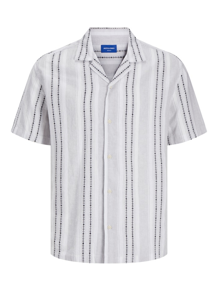 Dobby-kankaassa on pieniä geometrisiä kuvioita, jotka lisäävät tekstuuria hienostuneeseen ilmeeseen.