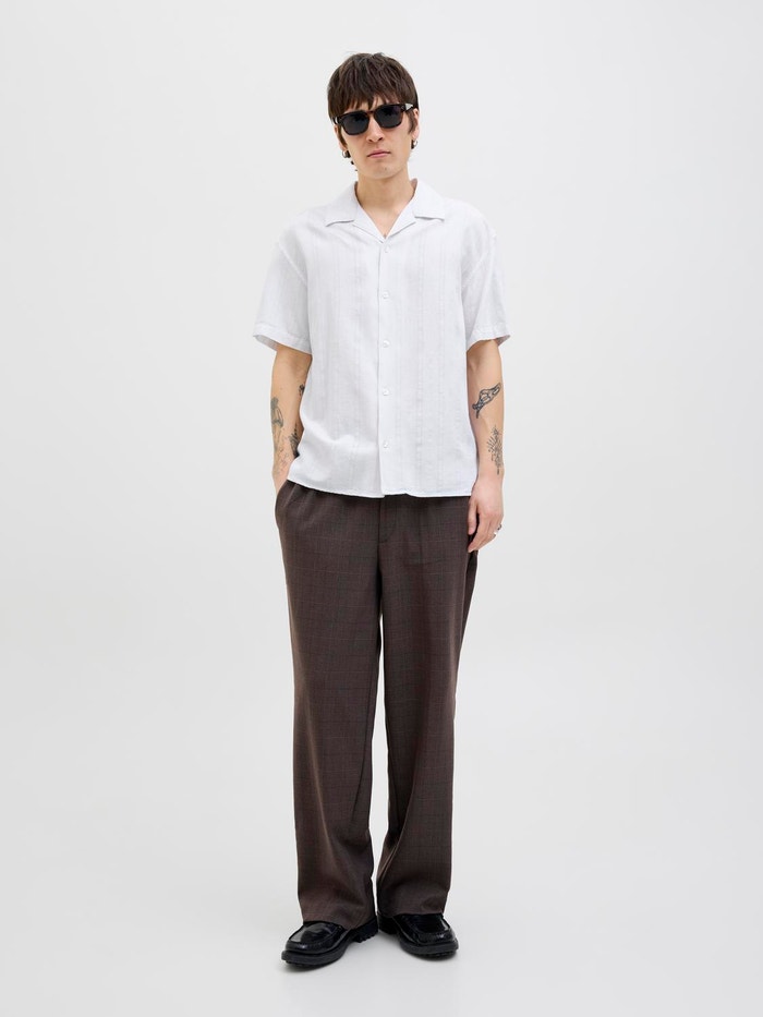 Dobby-kankaassa on pieniä geometrisiä kuvioita, jotka lisäävät tekstuuria hienostuneeseen ilmeeseen.