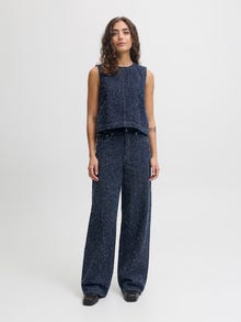 Uskalla olla erilainen rohkeiden farkkujemme kanssa. Jokainen kappale on suunniteltu tekemään rohkea vaikutelma ja muuttamaan asusi todelliseksi muodikkaaksi. Nämä tyylit sopivat täydellisesti niille, jotka omaksuvat yksilöllisyytensä, ja ne tuovat vaatekaappiisi eloisaa ja ainutlaatuista energiaa. Denim on kestävä toimikaskangas, jolle on ominaista värjätty loimilanka ja kude, jotka on kudottu yhteen. - Tuotetyyppi : Wide fit -farkut - Taskut : Takataskut, Kolikkotasku, Etutaskut - Vyötärö : Korkea vyötärö - Pesu/viimeistely : Huuhtelupesu poistaa ylimääräisen väriaineen tehden vaatteesta pehmeän tuntuisen ja siistin näköisen - Malli : Korkea vyötärö, rento istuvuus, leveä lahke