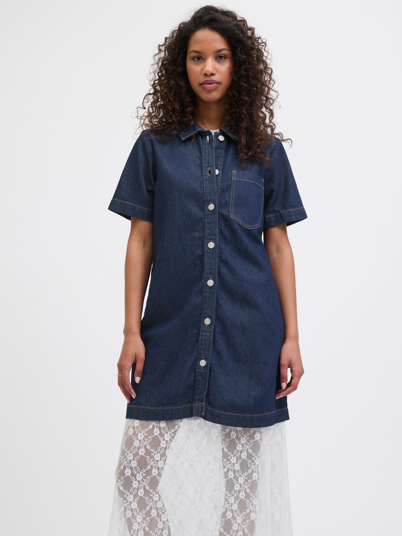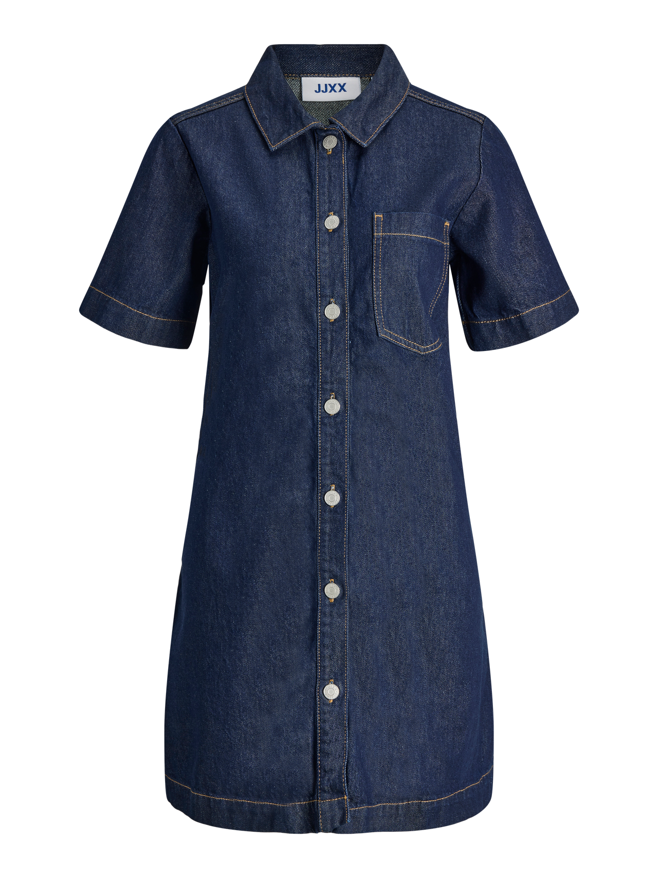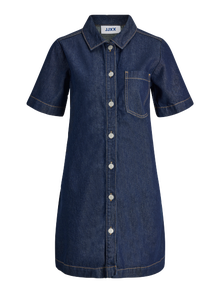 Rehaussez votre style au quotidien avec nos pièces en denim essentielles. Conçues pour le confort et la polyvalence, ces pièces intemporelles sont un must-have pour toute garde-robe. Parfaits pour toutes les occasions, ils complètent sans effort vos autres pièces stables préférées. Le denim est un tissu sergé durable caractérisé par un fil de chaîne teint et une trame qui sont tissés ensemble. - Type d'article : Robe en denim - Col : Col chemise - Manches : Manches courtes - Fermeture : Fermeture par bouton - Longueur/Taille : Court - Lavage/finition : Délavage brut pour enlever l'excès de colorant pour un toucher doux et un look épuré - Coupe : Standard Fit
